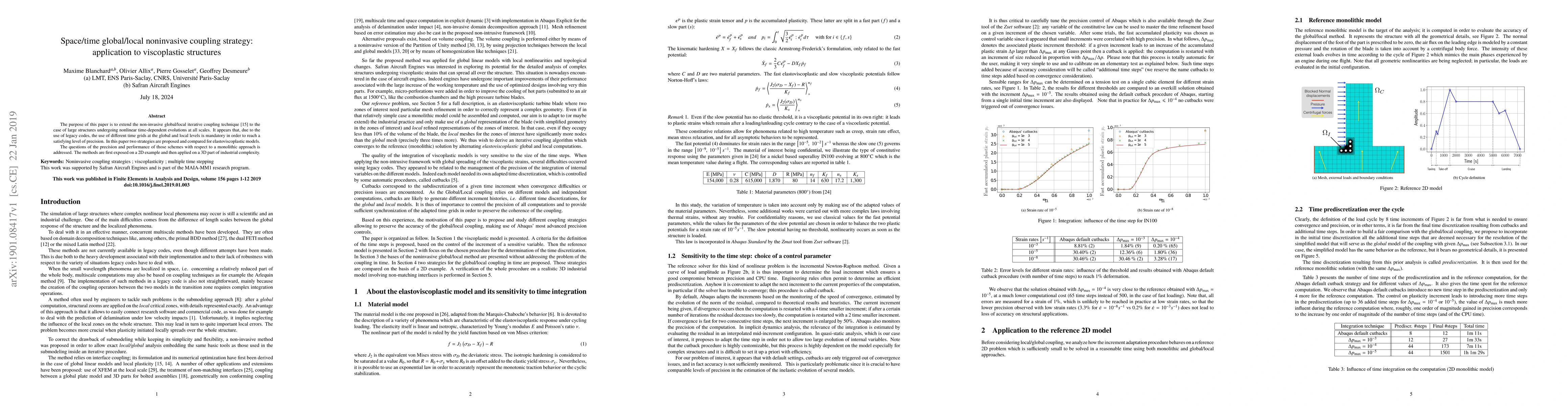 This paper presents an extended non-invasive global/local iterative coupling technique for large nonlinear time-dependent structures, using different time grids at global and local levels. It proposes and compares two strategies for elastoviscoplastic models, demonstrating their precision and performance against a monolithic approach on 2D and 3D industrial examples.