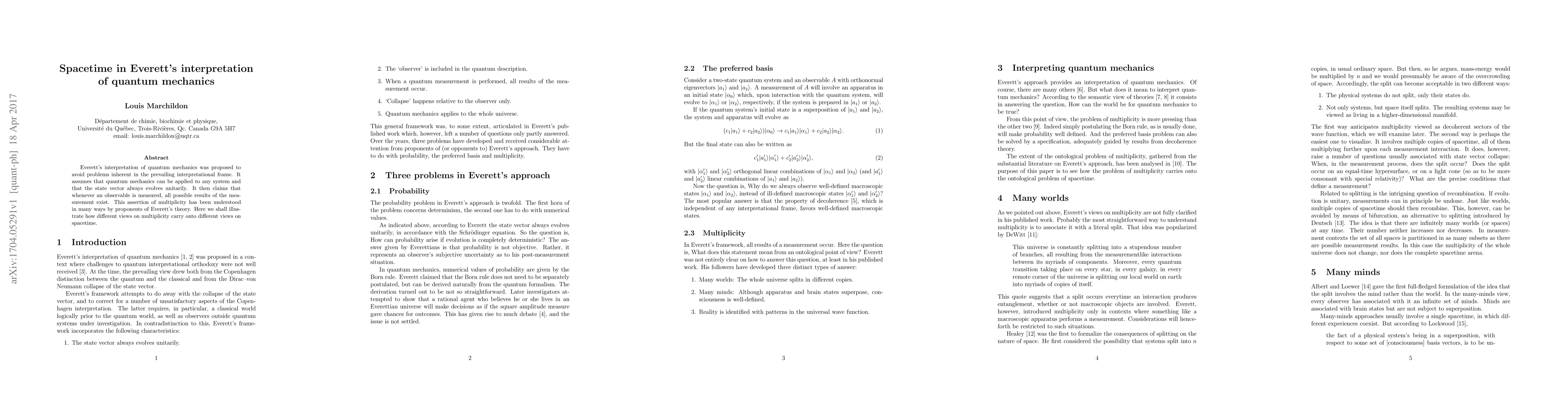 Summary: This paper explores how Everett's interpretation of quantum mechanics, which posits that all measurement outcomes coexist, leads to varied conceptualizations of spacetime, reflecting the diverse understandings of the theory's multiplicity principle.