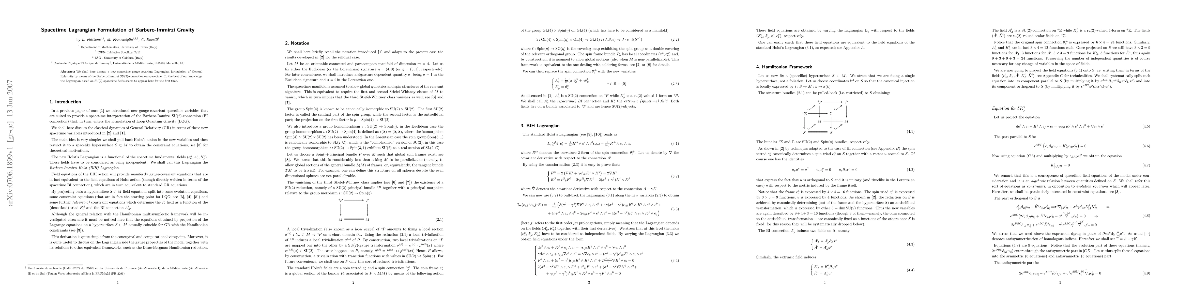 We shall here discuss a new spacetime gauge-covariant Lagrangian formulation of General Relativity by means of the Barbero-Immirzi SU(2)-connection on spacetime. To the best of our knowledge the Lagrangian based on SU(2) spacetime fields seems to appear here for the first time.