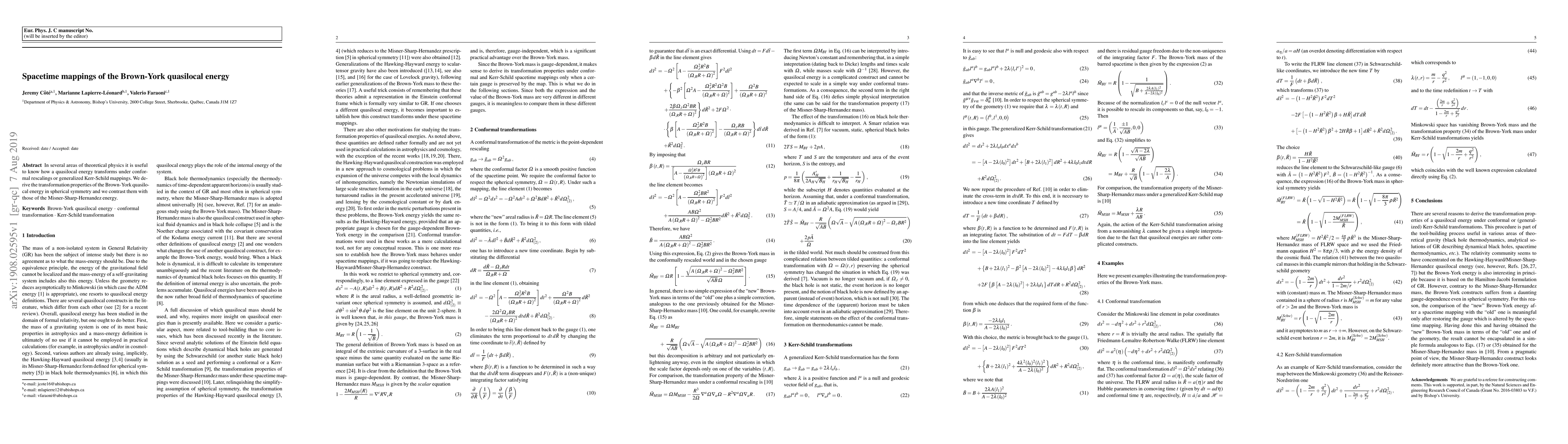 In several areas of theoretical physics it is useful to know how a quasilocal energy transforms under conformal rescalings or generalized Kerr-Schild mappings. We derive the transformation properties of the Brown-York quasilocal energy in spherical symmetry and we contrast them with those of the Misner-Sharp-Hernandez energy.