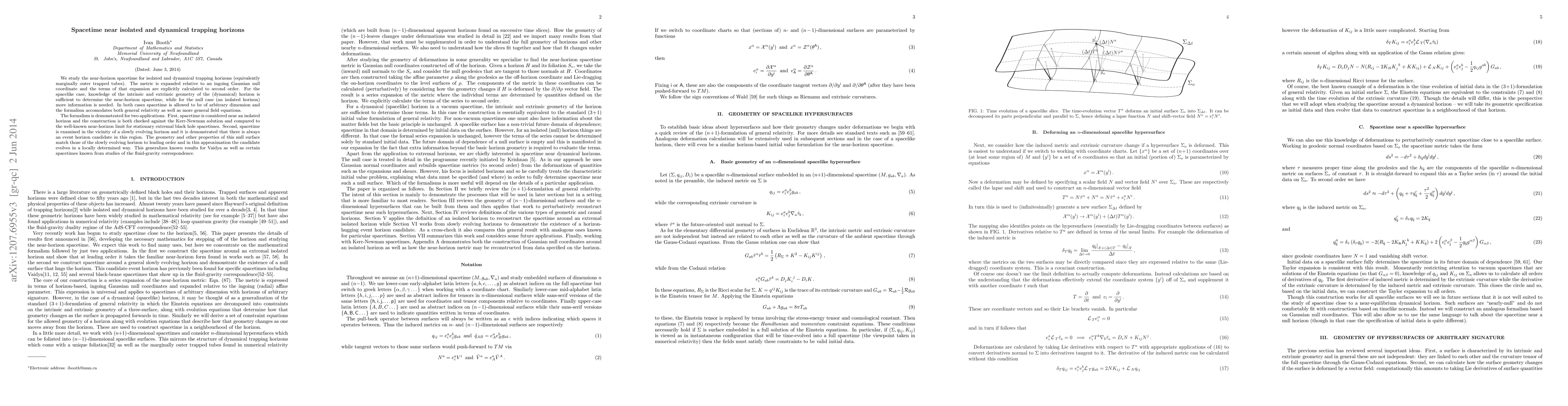 This paper explores the near-horizon spacetime geometry for isolated and dynamical trapping horizons using an expansion in Gaussian null coordinates. It demonstrates that intrinsic and extrinsic geometry suffices for the spacelike case, while more information is needed for null horizons. The formalism is applied to both isolated and evolving horizons, showing the existence of an event horizon candidate in the latter scenario.