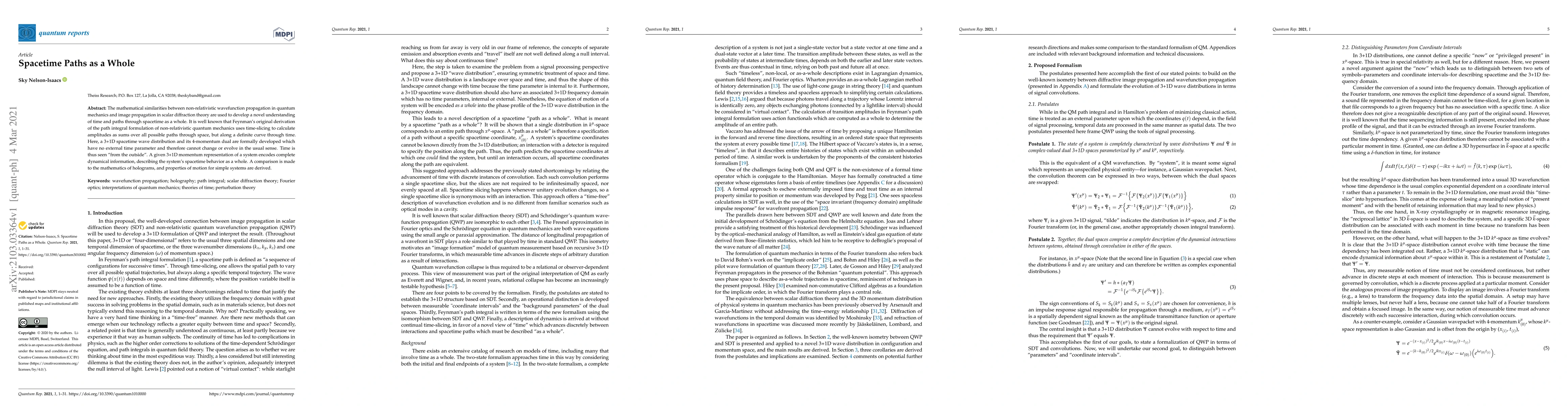 This research proposes a new perspective on time and spacetime paths by drawing parallels between quantum mechanics and scalar diffraction theory. It introduces a 3+1D spacetime wave distribution without a time parameter, suggesting a holistic view of a system's motion, akin to hologram properties.