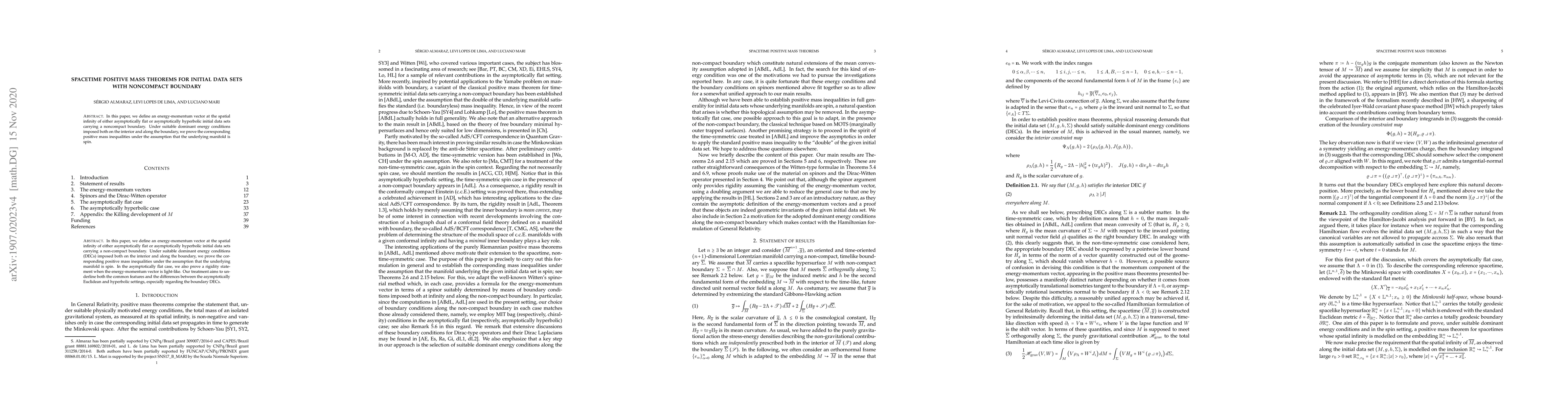 This paper establishes energy-momentum vectors at the spatial infinity for initial data sets with noncompact boundaries, proving positive mass inequalities under dominant energy conditions. It highlights differences between asymptotically flat and hyperbolic settings, particularly in boundary conditions, and proves rigidity in the asymptotically flat case for lightlike vectors.