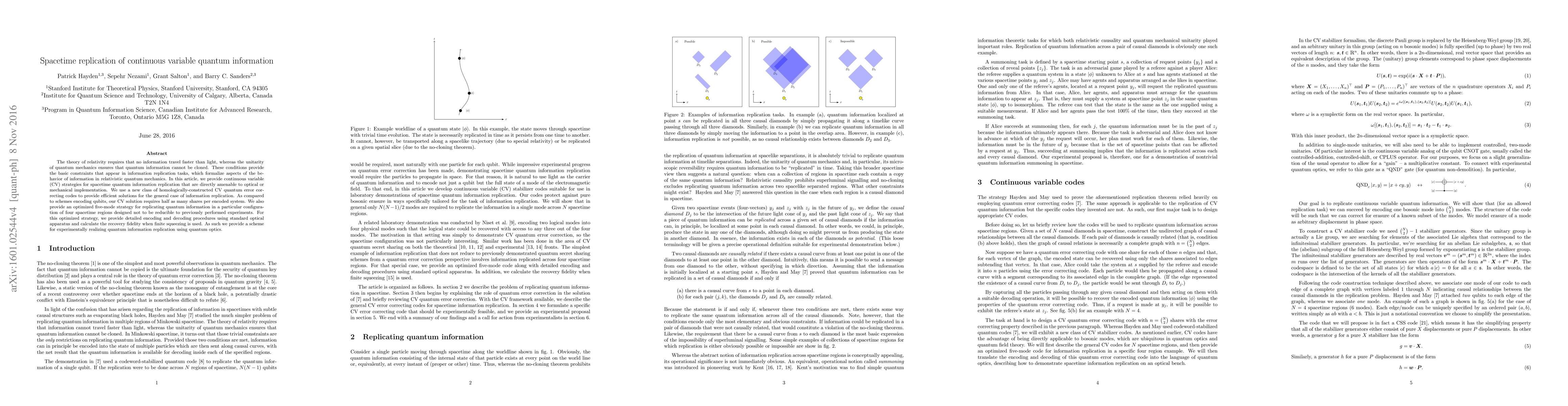 Researchers developed a method for replicating quantum information in spacetime using continuous variable quantum error correcting codes, offering a more efficient solution than existing qubit-based methods.