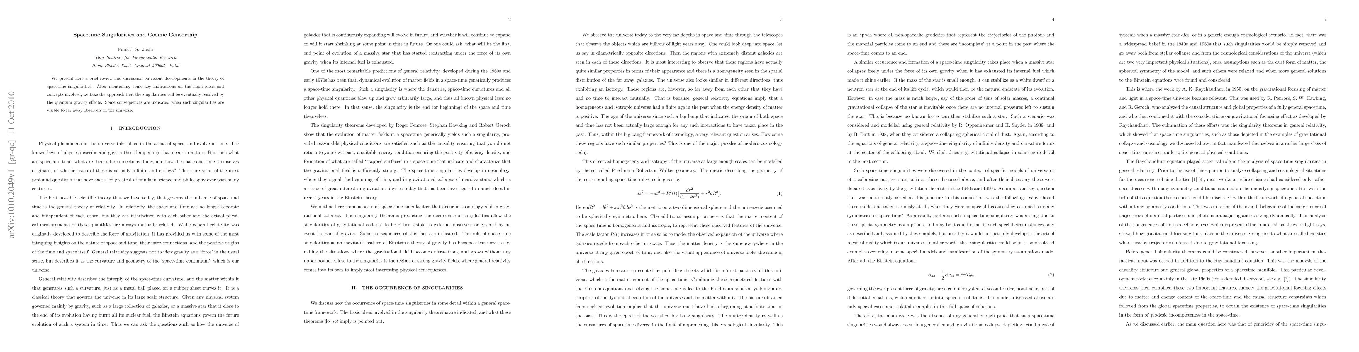 This paper reviews recent developments in the theory of spacetime singularities, suggesting that quantum gravity may resolve these singularities, and discusses implications for cosmic censorship when singularities become visible to distant observers.