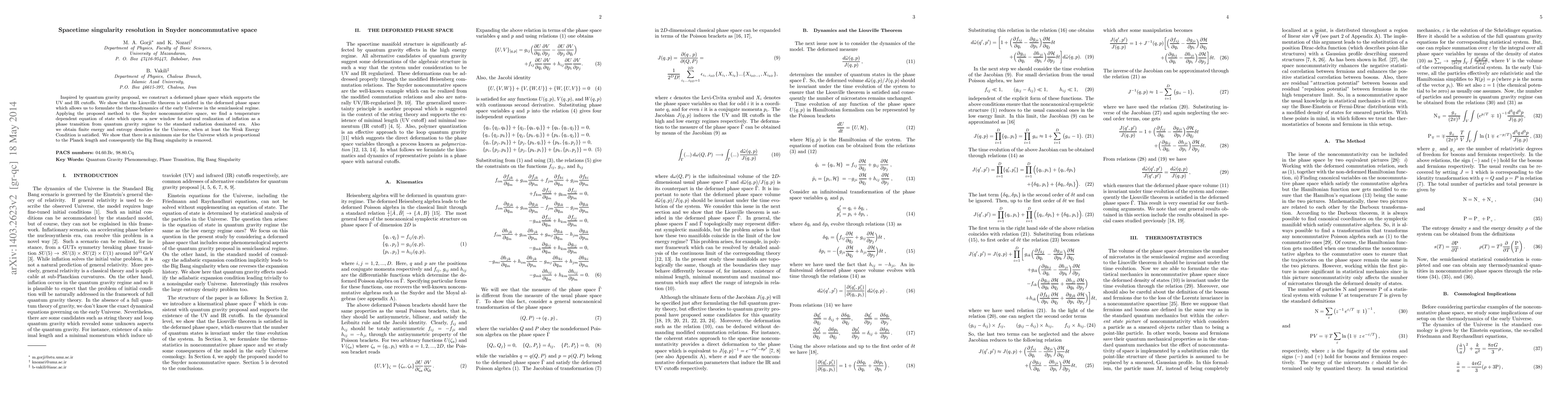 Inspired by quantum gravity proposal, we construct a deformed phase space which supports the UV and IR cutoffs. We show that the Liouville theorem is satisfied in the deformed phase space which allows us to formulate the thermodynamics of the early Universe in the semiclassical regime. Applying the proposed method to the Snyder noncommutative space, we find a temperature dependent equation of state which opens a new window for natural realization of inflation as a phase transition from quantum gravity regime to the standard radiation dominated era. Also we obtain finite energy and entropy densities for the Universe, when at least the Weak Energy Condition is satisfied. We show that there is a minimum size for the Universe which is proportional to the Planck length and consequently the Big Bang singularity is removed.