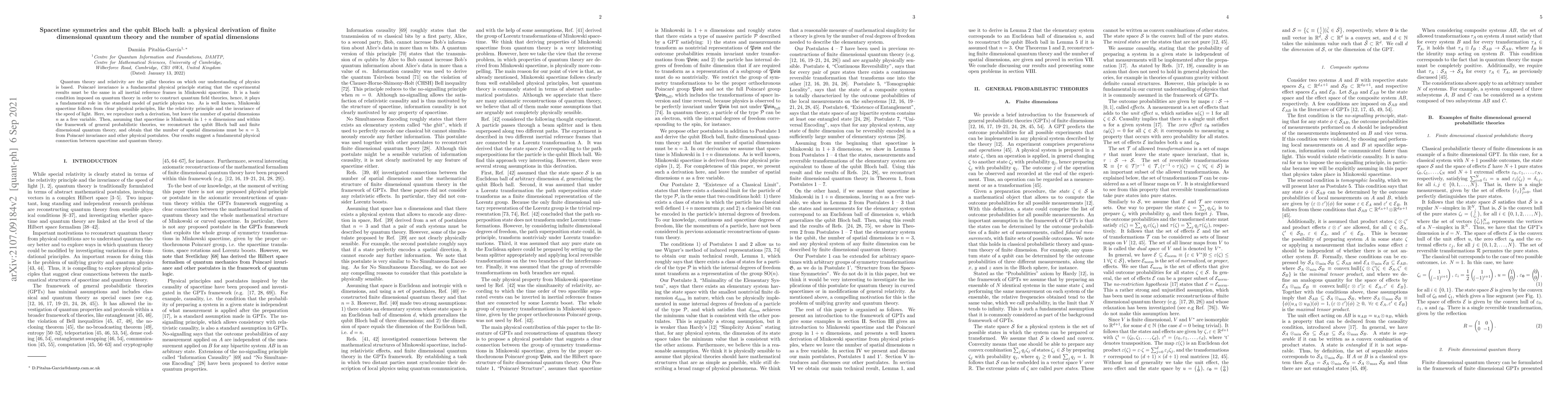 Quantum theory and relativity are the pillar theories on which our understanding of physics is based. Poincar\'e invariance is a fundamental physical principle stating that the experimental results must be the same in all inertial reference frames in Minkowski spacetime. It is a basic condition imposed on quantum theory in order to construct quantum field theories, hence, it plays a fundamental role in the standard model of particle physics too. As is well known, Minkowski spacetime follows from clear physical principles, like the relativity principle and the invariance of the speed of light. Here, we reproduce such a derivation, but leave the number of spatial dimensions $n$ as a free variable. Then, assuming that spacetime is Minkowski in $1+n$ dimensions and within the framework of general probabilistic theories, we reconstruct the qubit Bloch ball and finite dimensional quantum theory, and obtain that the number of spatial dimensions must be $n=3$, from Poincar\'e invariance and other physical postulates. Our results suggest a fundamental physical connection between spacetime and quantum theory.