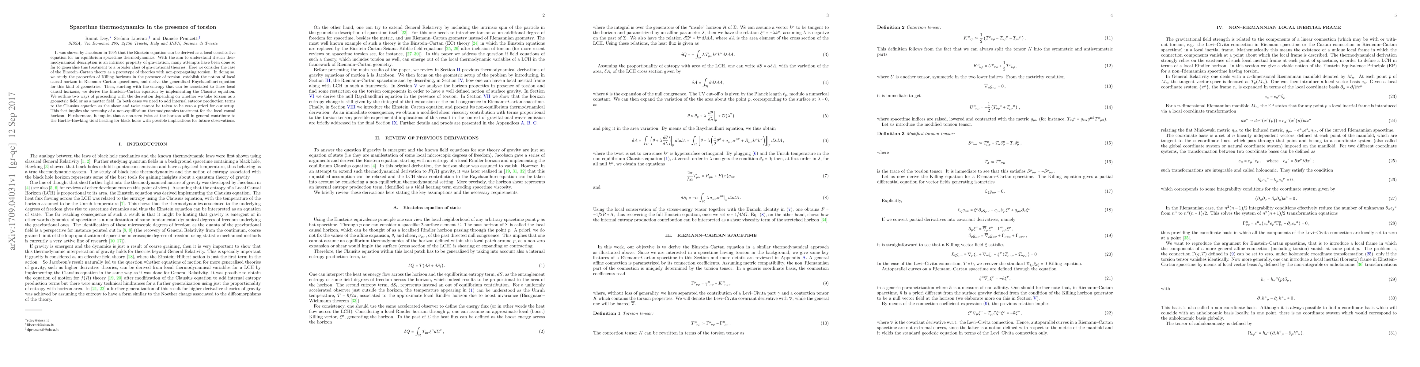 This paper extends Jacobson's thermodynamic derivation of the Einstein equation to Einstein-Cartan theory, incorporating torsion. It derives the generalised Raychaudhuri equation and shows that torsion requires non-equilibrium thermodynamics, potentially affecting black hole tidal heating.