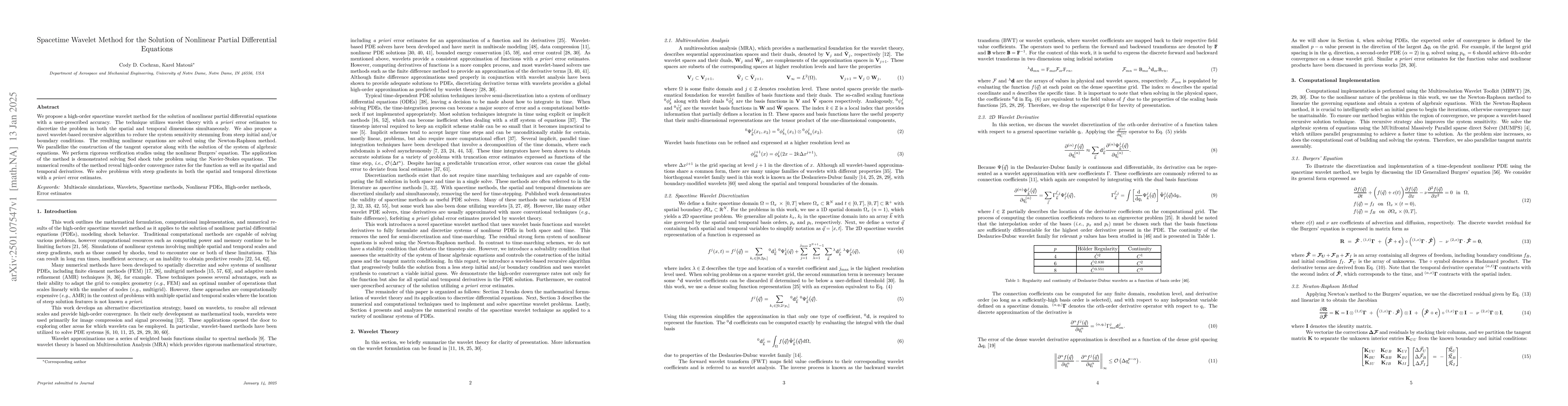 This paper introduces a high-order spacetime wavelet method for solving nonlinear partial differential equations, achieving user-prescribed accuracy through wavelet theory and a recursive algorithm to manage steep initial/boundary conditions. The method demonstrates high-order convergence rates, as verified by solving the nonlinear Burgers' equation and the Sod shock tube problem.