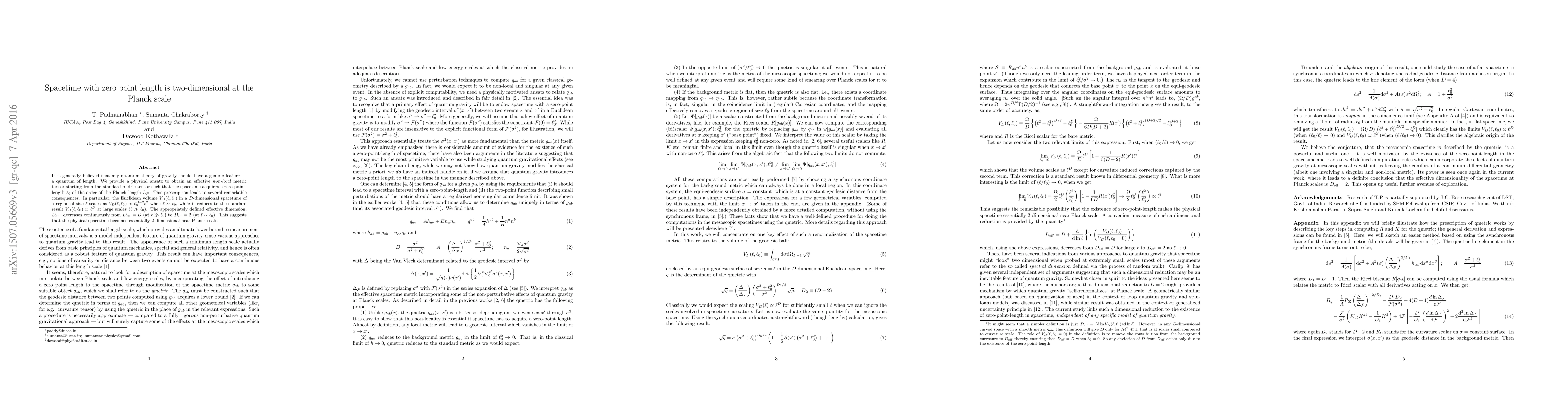 This paper proposes a non-local metric tensor that leads to a zero-point-length of the order of the Planck length, resulting in a spacetime that effectively reduces to two dimensions at the Planck scale. The Euclidean volume in a D-dimensional spacetime scales differently near the zero-point-length, suggesting a continuous decrease in effective dimension from D to 2.