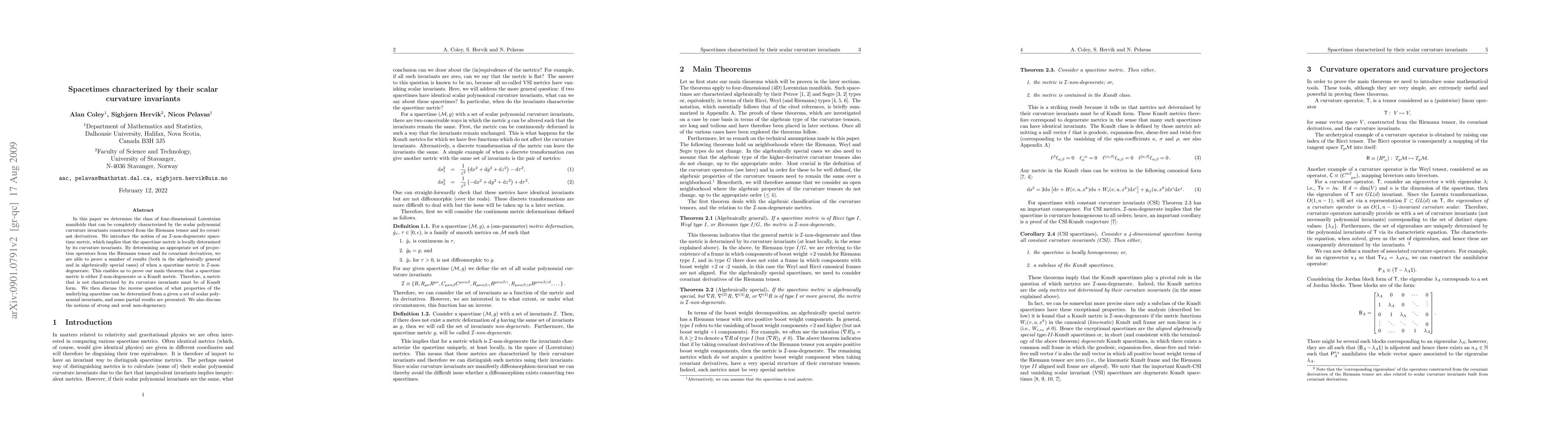 In this paper we determine the class of four-dimensional Lorentzian manifolds that can be completely characterized by the scalar polynomial curvature invariants constructed from the Riemann tensor and its covariant derivatives. We introduce the notion of an $\mathcal{I}$-non-degenerate spacetime metric, which implies that the spacetime metric is locally determined by its curvature invariants. By determining an appropriate set of projection operators from the Riemann tensor and its covariant derivatives, we are able to prove a number of results (both in the algebraically general and in algebraically special cases) of when a spacetime metric is $\mathcal{I}$-non-degenerate. This enables us to prove our main theorem that a spacetime metric is either $\mathcal{I}$-non-degenerate or a Kundt metric. Therefore, a metric that is not characterized by its curvature invariants must be of degenerate Kundt form. We then discuss the inverse question of what properties of the underlying spacetime can be determined from a given a set of scalar polynomial invariants, and some partial results are presented. We also discuss the notions of \emph{strong} and \emph{weak} non-degeneracy.