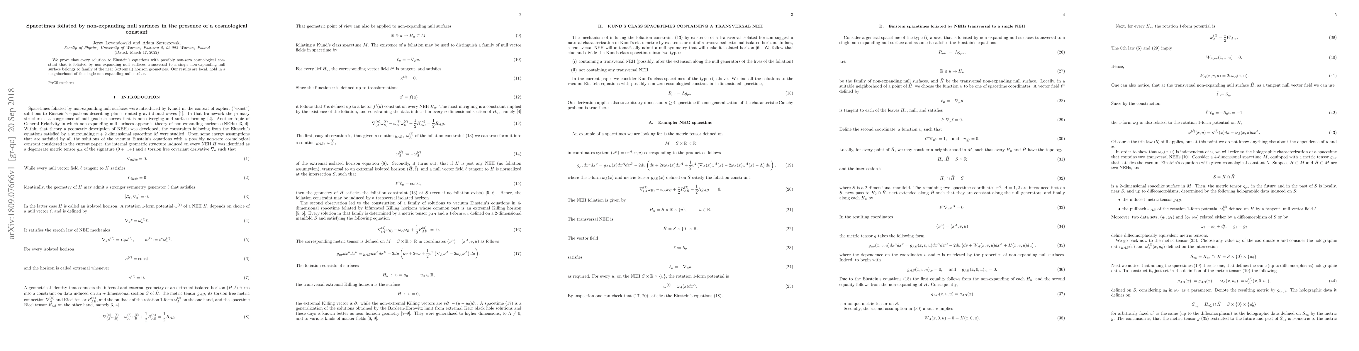 We prove that every solution to Einstein's equations with possibly non-zero cosmological constant that is foliated by non-expanding null surfaces transversal to a single non-expanding null surface belongs to family of the near (extremal) horizon geometries. Our results are local, hold in a neighborhood of the single non-expanding null surface.