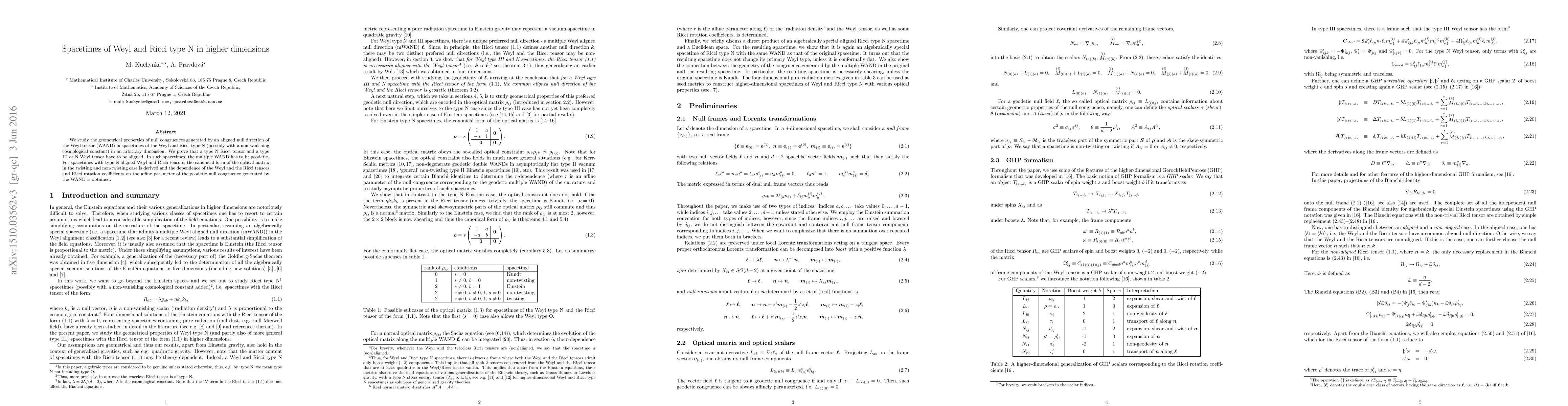This paper investigates the geometrical properties of null congruences in higher-dimensional spacetimes of Weyl and Ricci type N, proving alignment between type N Ricci and type III or N Weyl tensors. It also derives the canonical form of the optical matrix and examines the relationships between the Weyl and Ricci tensors and Ricci rotation coefficients along the aligned null direction.