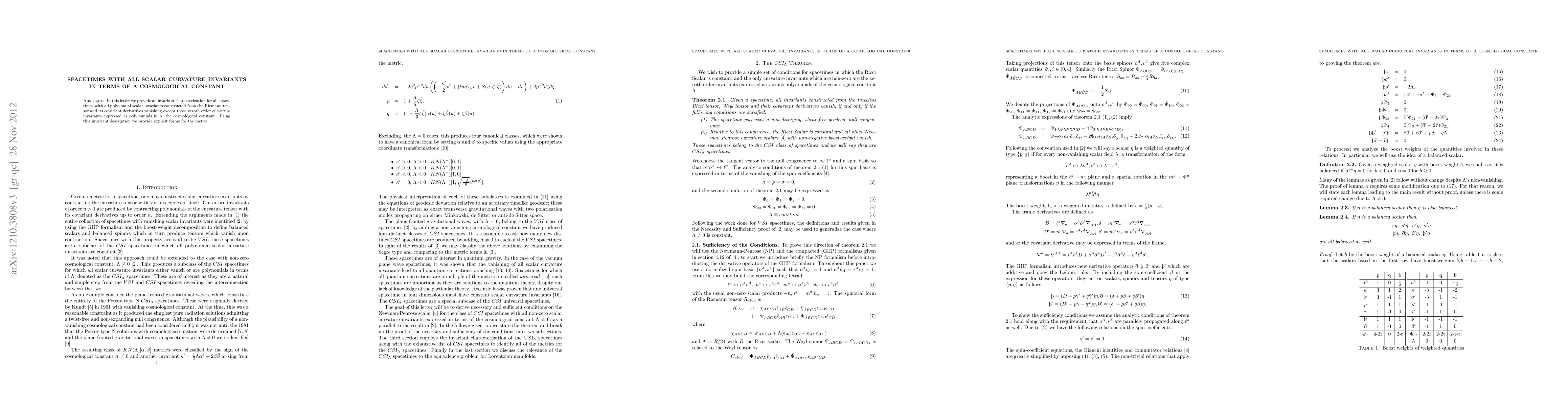 This paper characterizes spacetimes where all scalar curvature invariants vanish except for those expressed as polynomials in the cosmological constant $\Lambda$, and provides explicit metric forms for such spacetimes.