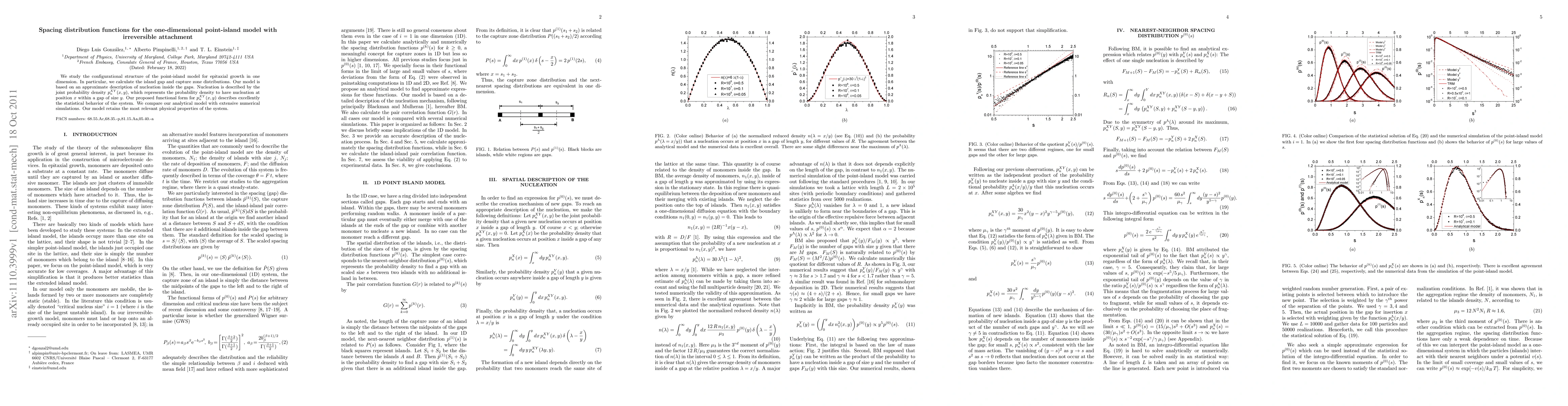 This paper investigates the configurational structure of the one-dimensional point-island model for epitaxial growth, focusing on island gap and capture zone distributions. The authors propose a functional form for the nucleation probability density that accurately describes the system's statistical behavior, validated through comparison with numerical simulations.