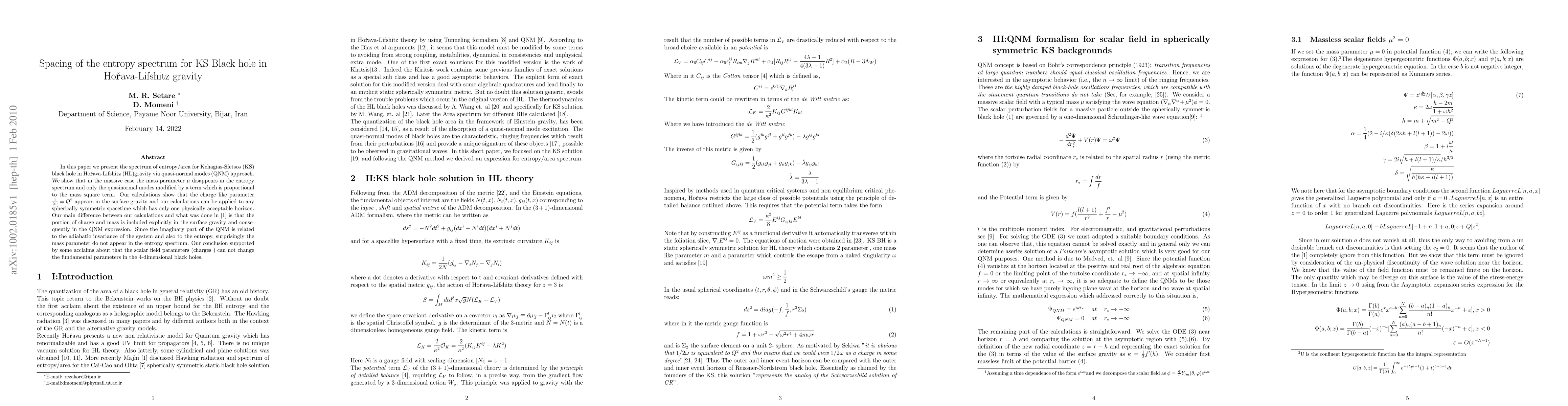 Researchers studied the entropy spectrum of a specific black hole in Horava-Lifshitz gravity, finding that mass parameter disappears from the entropy spectrum in certain conditions, while charge-like parameters appear.