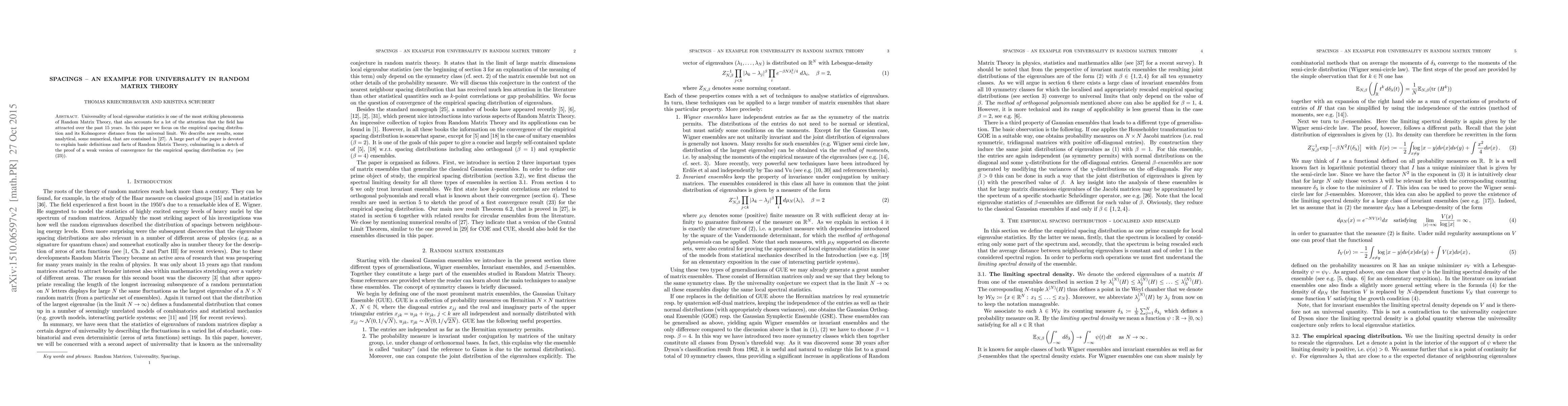 This paper investigates the universality of local eigenvalue statistics in Random Matrix Theory, focusing on the empirical spacing distribution and its convergence to the universal limit. It provides both analytical and numerical results, along with a detailed explanation of fundamental concepts and a sketch of the proof for the convergence of empirical spacing distribution.