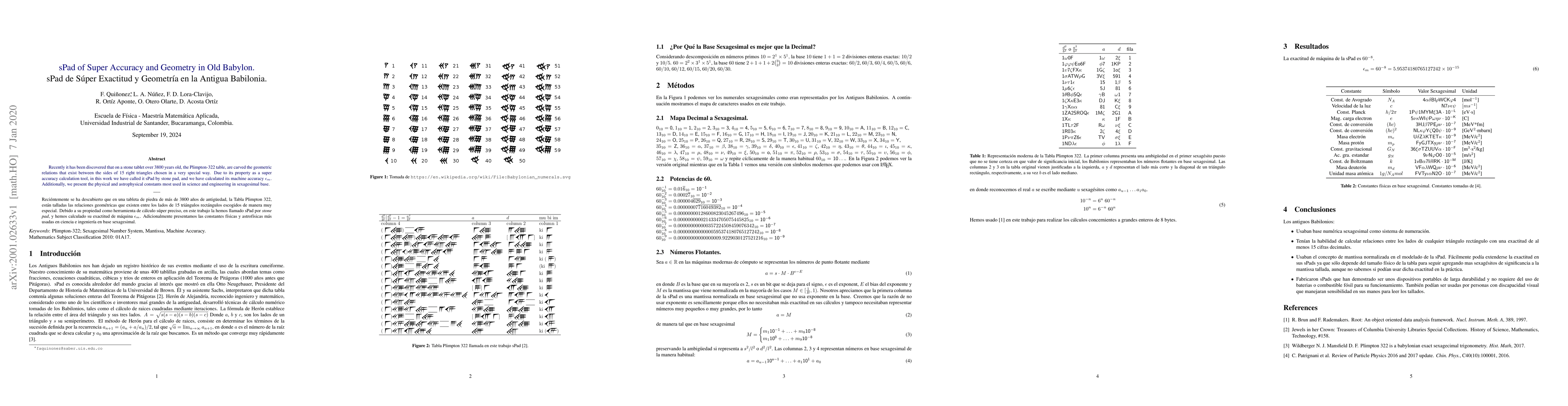 This paper investigates the Plimpton-322 stone tablet, over 3800 years old, which contains geometric relations of 15 right triangles, termed sPad for its super accuracy. The study calculates its machine accuracy $\epsilon_m$ and presents commonly used physical and astrophysical constants in sexagesimal base.