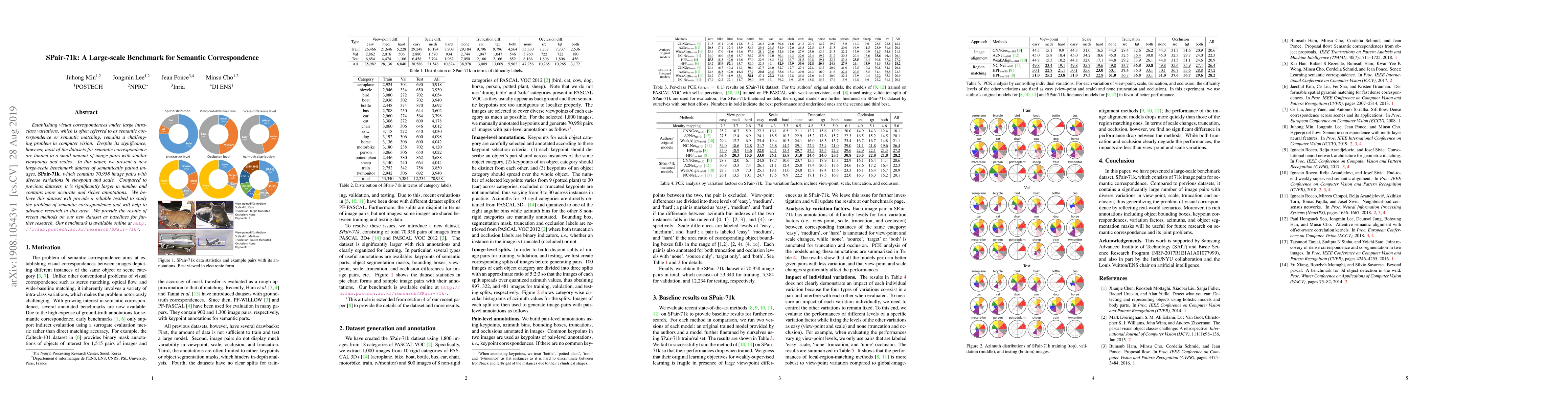 This paper introduces SPair-71k, a large-scale benchmark dataset for semantic correspondence containing 70,958 image pairs with diverse viewpoint and scale variations, aiming to advance research in this challenging computer vision area. The dataset provides a reliable testbed and baseline results for further studies, available online.