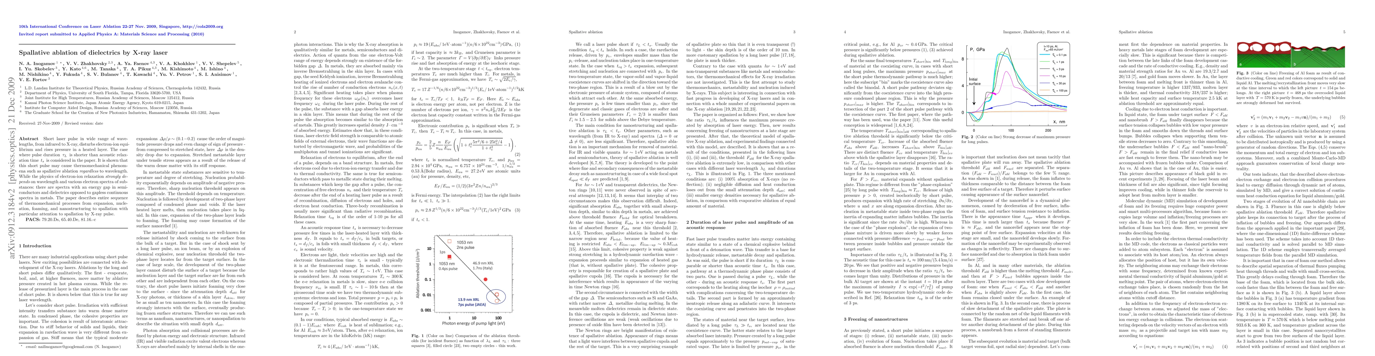 Short laser pulse in wide range of wavelengths, from infrared to X-ray, disturbs electron-ion equilibrium and rises pressure in a heated layer. The case where pulse duration $\tau_L$ is shorter than acoustic relaxation time $t_s$ is considered in the paper. It is shown that this short pulse may cause thermomechanical phenomena such as spallative ablation regardless to wavelength. While the physics of electron-ion relaxation on wavelength and various electron spectra of substances: there are spectra with an energy gap in semiconductors and dielectrics opposed to gapless continuous spectra in metals. The paper describes entire sequence of thermomechanical processes from expansion, nucleation, foaming, and nanostructuring to spallation with particular attention to spallation by X-ray pulse.