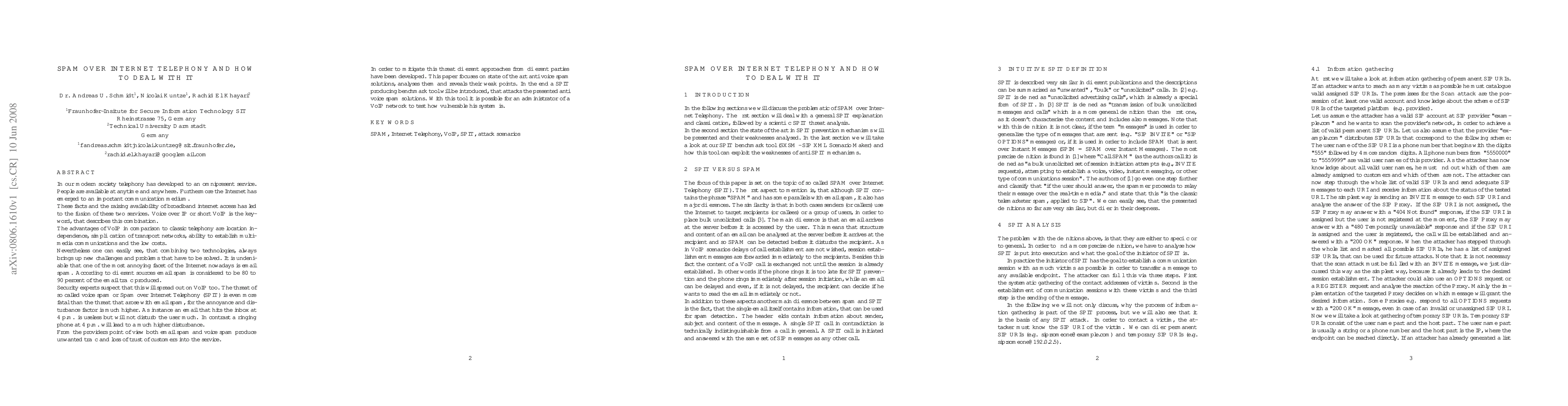 This paper investigates voice spam (SPIT) threats in Internet Telephony, analyzing existing anti-SPIT solutions and proposing a vulnerability testing tool to assess VoIP network security.