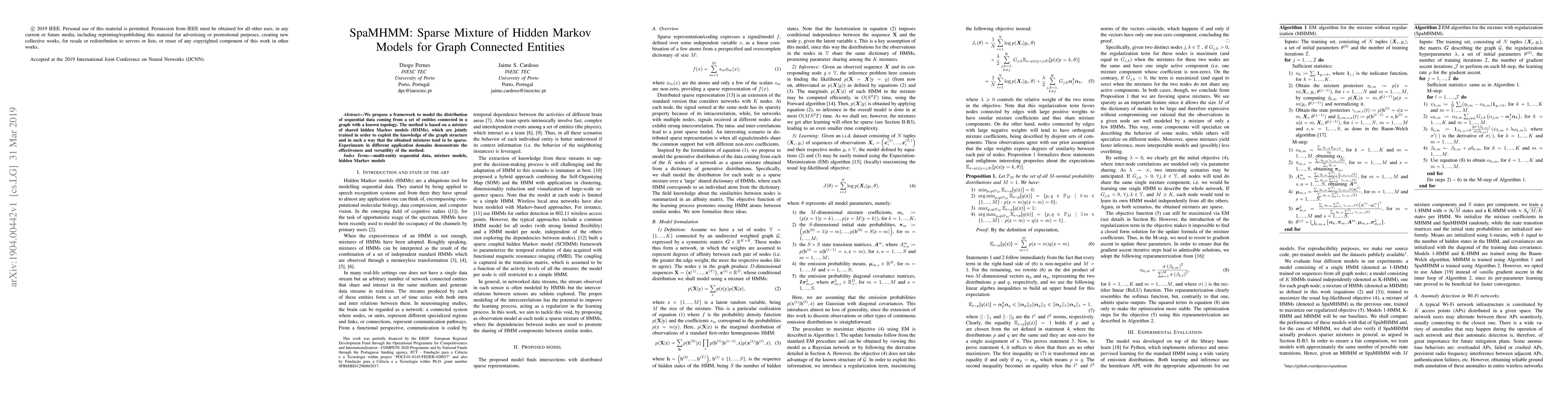 The SpaMHMM framework models sequential data from graph-connected entities using a sparse mixture of shared hidden Markov models, leveraging the graph structure for improved performance. Experiments across various applications show the method's effectiveness and versatility.