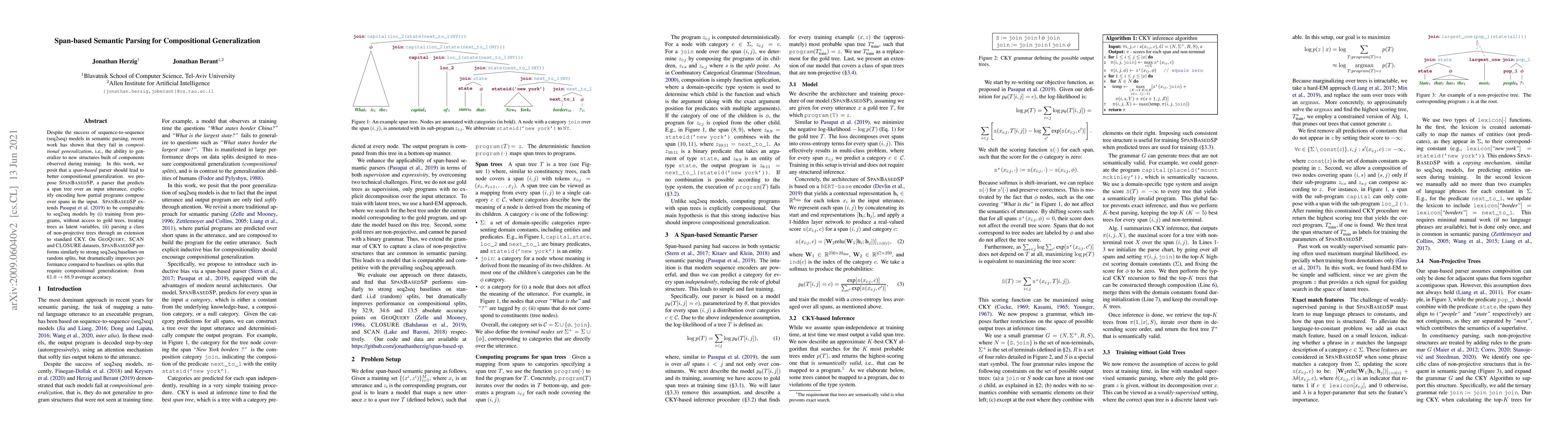 This paper proposes SpanBasedSP, a span-tree parser for semantic parsing that aims to improve compositional generalization over seq2seq models. SpanBasedSP outperforms baselines on datasets requiring compositional generalization, achieving an average accuracy increase from 61.0 to 88.9.