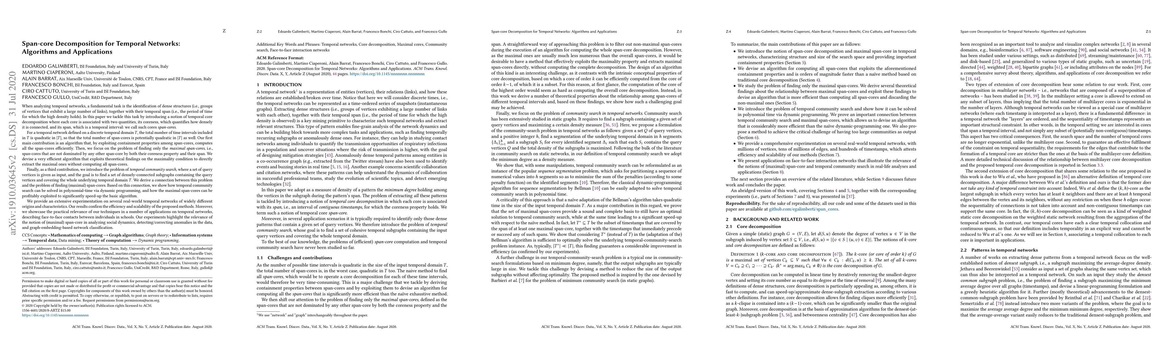 Researchers introduce a method for identifying dense structures in temporal networks, known as span-cores, which capture both the density of connections and their duration, and provide efficient algorithms to find them.