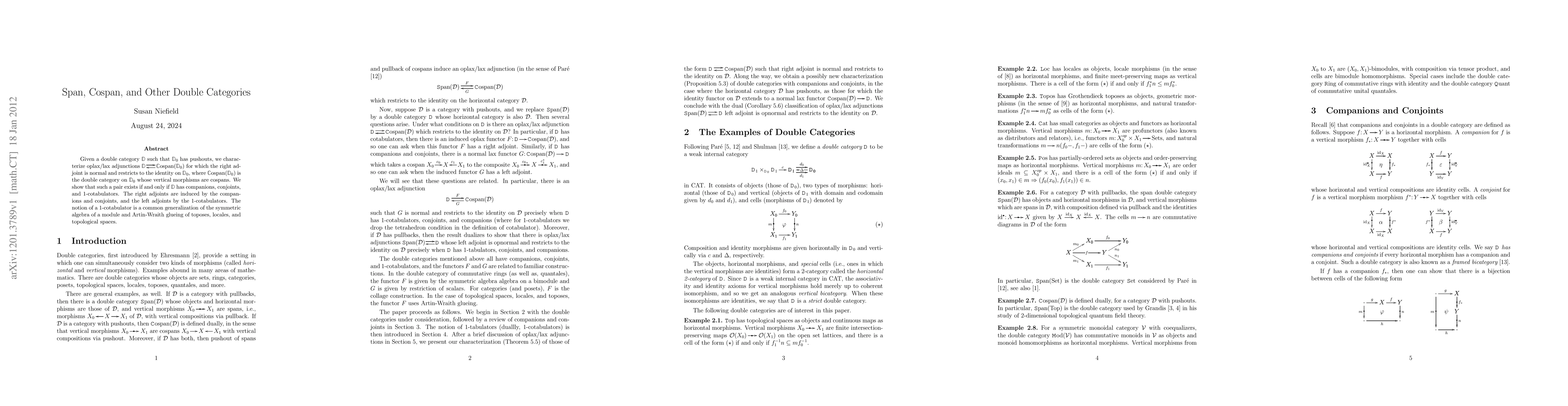 Given a double category D such that D_0 has pushouts, we characterize oplax/lax adjunctions between D and Cospan(D_0) such that the right adjoint is normal and restricts to the identity on D_0, where Cospan(D_0) denotes the double category on D_0 whose vertical morphisms are cospans. We show that such a pair exists if and only if D has companions, conjoints, and 1-cotabulators. The right adjoints are induced by the companions and conjoints, and the left adjoints by the 1-cotabulators. The notion of a 1-cotabulator is a common generalization of the symmetric algebra of a module and Artin-Wraith glueing of toposes, locales, and topological spaces. Along the way, we obtain a characterization of double categories with companions and conjoints as those for which the identity functor on D_0 extends to a normal lax functor from Cospan(D_0) to D.