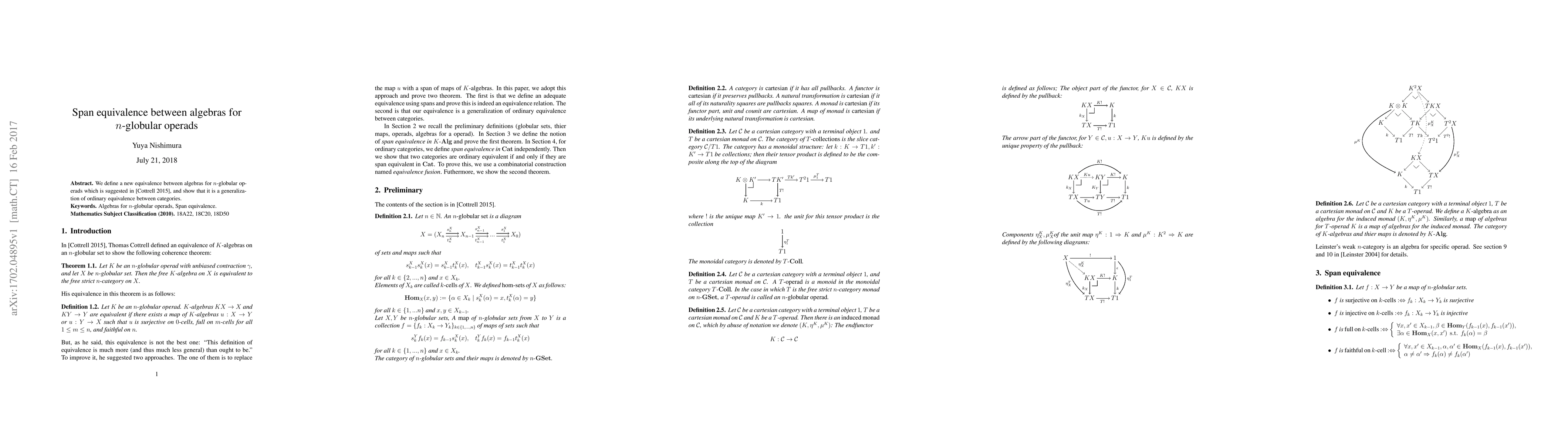 We define a new equivalence between algebras for n-globular operads which is suggested in [Cottrell 2015], and show that it is a generalization of ordinary equivalence between categories.