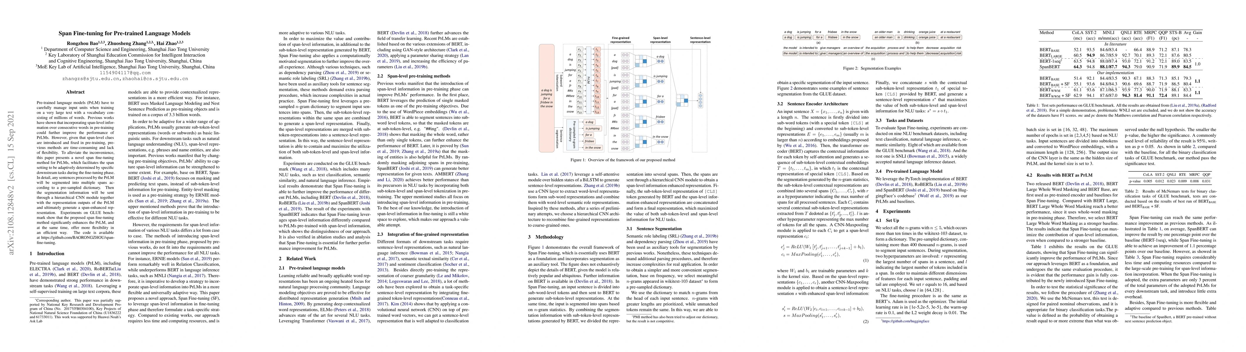 This paper introduces a span fine-tuning method for pre-trained language models to adaptively determine span settings based on downstream tasks, improving model performance and flexibility. The method segments sentences into spans using a pre-sampled dictionary and enhances representations via a hierarchical CNN, showing significant gains on GLUE benchmarks.
