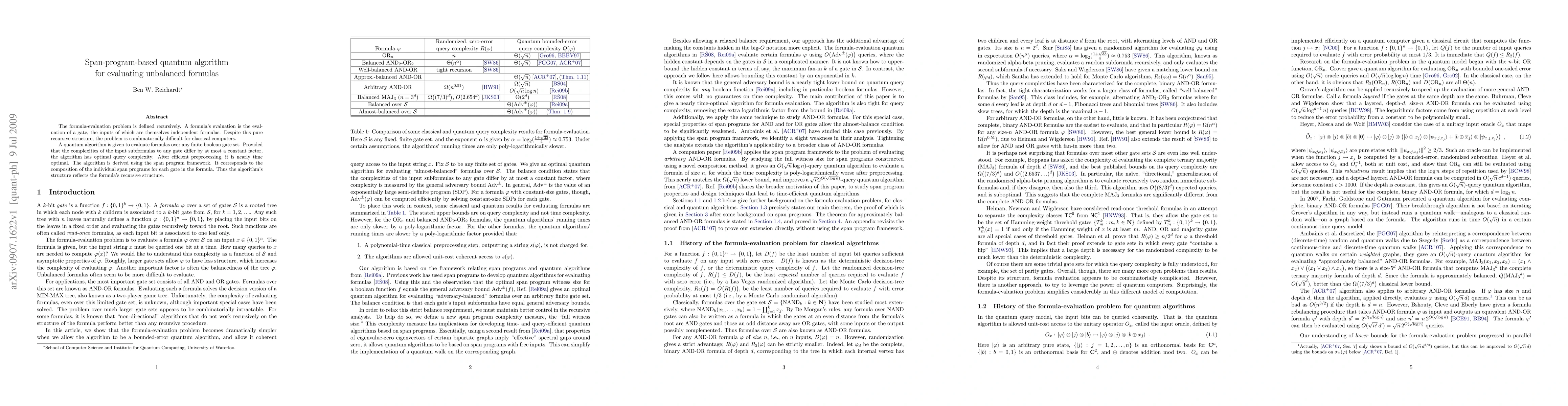 The formula-evaluation problem is defined recursively. A formula's evaluation is the evaluation of a gate, the inputs of which are themselves independent formulas. Despite this pure recursive structure, the problem is combinatorially difficult for classical computers. A quantum algorithm is given to evaluate formulas over any finite boolean gate set. Provided that the complexities of the input subformulas to any gate differ by at most a constant factor, the algorithm has optimal query complexity. After efficient preprocessing, it is nearly time optimal. The algorithm is derived using the span program framework. It corresponds to the composition of the individual span programs for each gate in the formula. Thus the algorithm's structure reflects the formula's recursive structure.