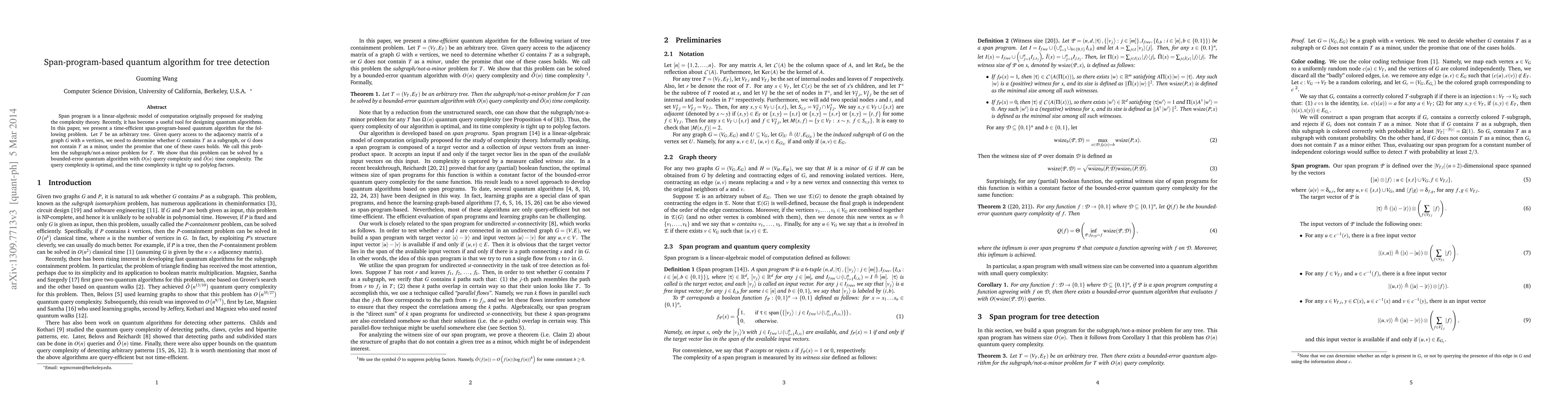 Span program is a linear-algebraic model of computation originally proposed for studying the complexity theory. Recently, it has become a useful tool for designing quantum algorithms. In this paper, we present a time-efficient span-program-based quantum algorithm for the following problem. Let $T$ be an arbitrary tree. Given query access to the adjacency matrix of a graph $G$ with $n$ vertices, we need to determine whether $G$ contains $T$ as a subgraph, or $G$ does not contain $T$ as a minor, under the promise that one of these cases holds. We call this problem the subgraph/not-a-minor problem for $T$. We show that this problem can be solved by a bounded-error quantum algorithm with $O(n)$ query complexity and $\tilde{O}(n)$ time complexity. The query complexity is optimal, and the time complexity is tight up to polylog factors.