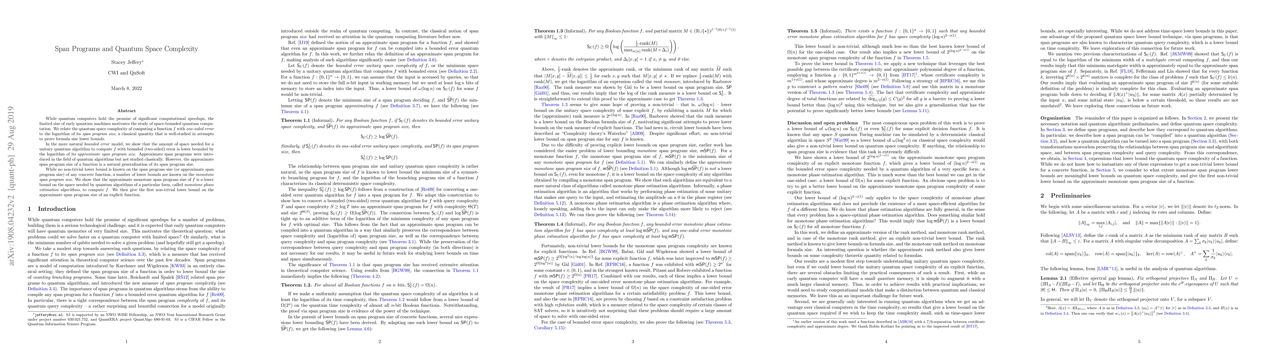 This paper explores the space complexity of quantum computation, relating it to the size of span programs, a classical concept used in proving formula size lower bounds. It establishes a lower bound for quantum algorithms computing functions with bounded error in terms of the approximate span program size, introducing a new connection between quantum and classical computation.
