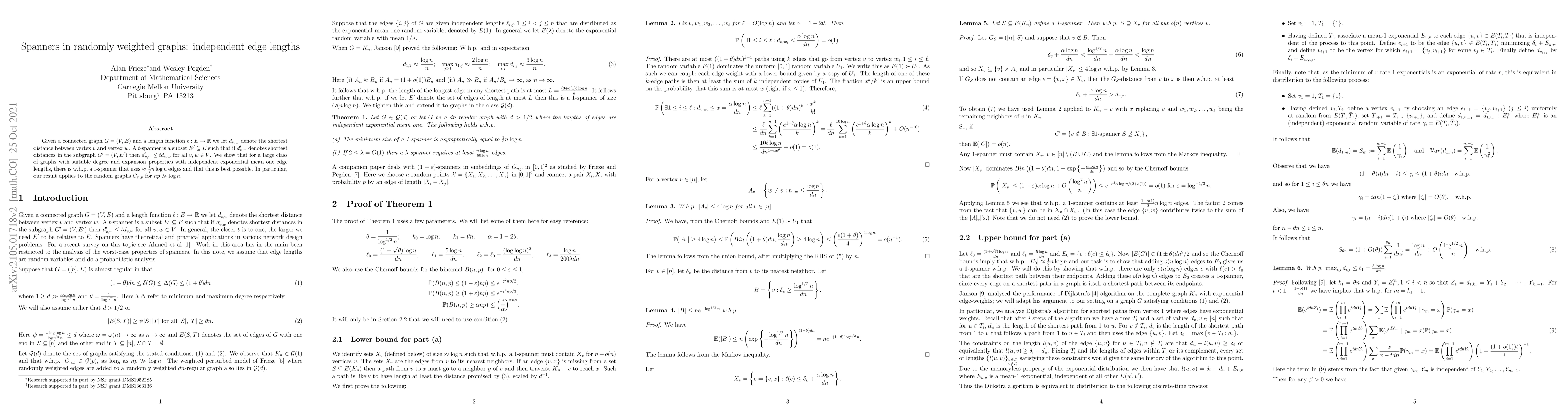 Given a connected graph $G=(V,E)$ and a length function $\ell:E\to {\mathbb R}$ we let $d_{v,w}$ denote the shortest distance between vertex $v$ and vertex $w$. A $t$-spanner is a subset $E'\subseteq E$ such that if $d'_{v,w}$ denotes shortest distances in the subgraph $G'=(V,E')$ then $d'_{v,w}\leq t d_{v,w}$ for all $v,w\in V$. We show that for a large class of graphs with suitable degree and expansion properties with independent exponential mean one edge lengths, there is w.h.p.~a 1-spanner that uses $\approx \frac12n\log n$ edges and that this is best possible. In particular, our result applies to the random graphs $G_{n,p}$ for $np\gg \log n$.