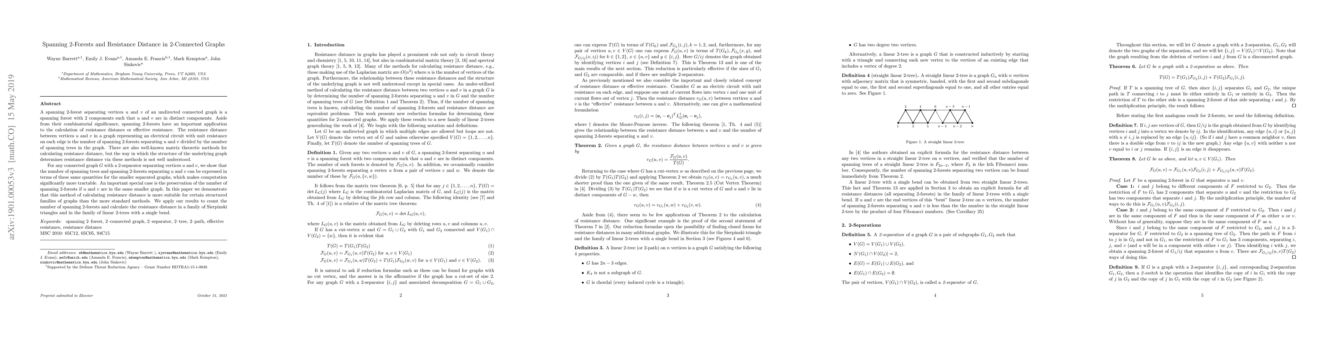 This paper explores the calculation of resistance distance in 2-connected graphs using spanning 2-forests, showing that it can be computed more easily by breaking down the graph into smaller sections. It demonstrates that this method is particularly effective for structured families of graphs, exemplified by applications to Sierpinski triangles and linear 2-trees with a single bend.