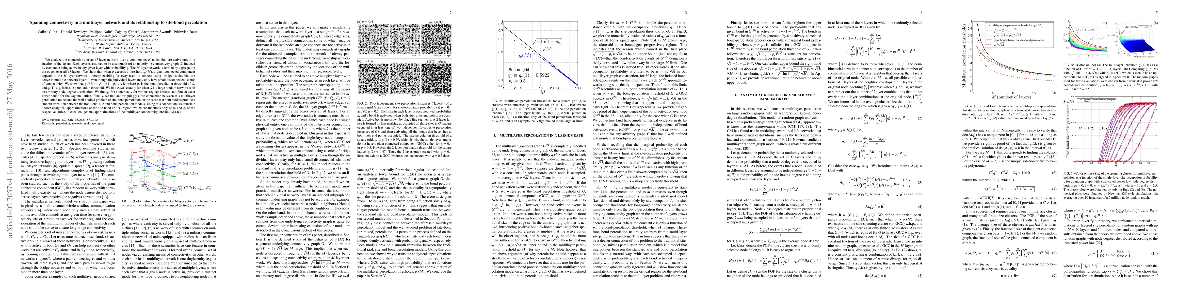 We analyze the connectivity of an $M$-layer network over a common set of nodes that are active only in a fraction of the layers. Each layer is assumed to be a subgraph (of an underlying connectivity graph $G$) induced by each node being active in any given layer with probability $q$. The $M$-layer network is formed by aggregating the edges over all $M$ layers. We show that when $q$ exceeds a threshold $q_c(M)$, a giant connected component appears in the $M$-layer network---thereby enabling far-away users to connect using `bridge' nodes that are active in multiple network layers---even though the individual layers may only have small disconnected islands of connectivity. We show that $q_c(M) \lesssim \sqrt{-\ln(1-p_c)}\,/{\sqrt{M}}$, where $p_c$ is the bond percolation threshold of $G$, and $q_c(1) \equiv q_c$ is its site percolation threshold. We find $q_c(M)$ exactly for when $G$ is a large random network with an arbitrary node-degree distribution. We find $q_c(M)$ numerically for various regular lattices, and find an exact lower bound for the kagome lattice. Finally, we find an intriguingly close connection between this multilayer percolation model and the well-studied problem of site-bond percolation, in the sense that both models provide a smooth transition between the traditional site and bond percolation models. Using this connection, we translate known analytical approximations of the site-bond critical region, which are functions only of $p_c$ and $q_c$ of the respective lattice, to excellent general approximations of the multilayer connectivity threshold $q_c(M)$.