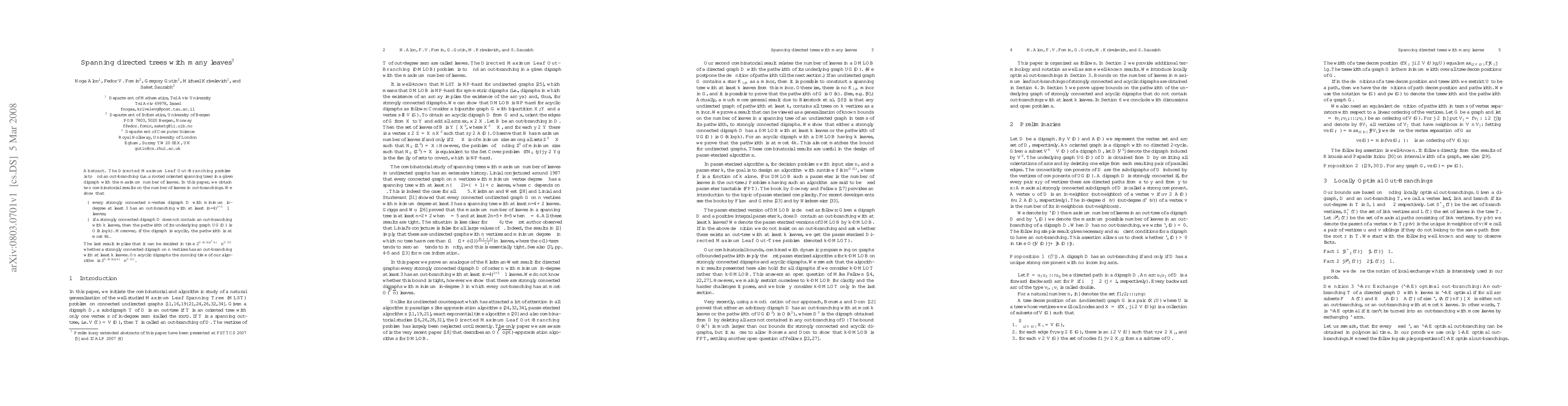 The paper uses combinatorial results and algorithmic techniques to analyze directed graphs, focusing on spanning directed trees with many leaves.
