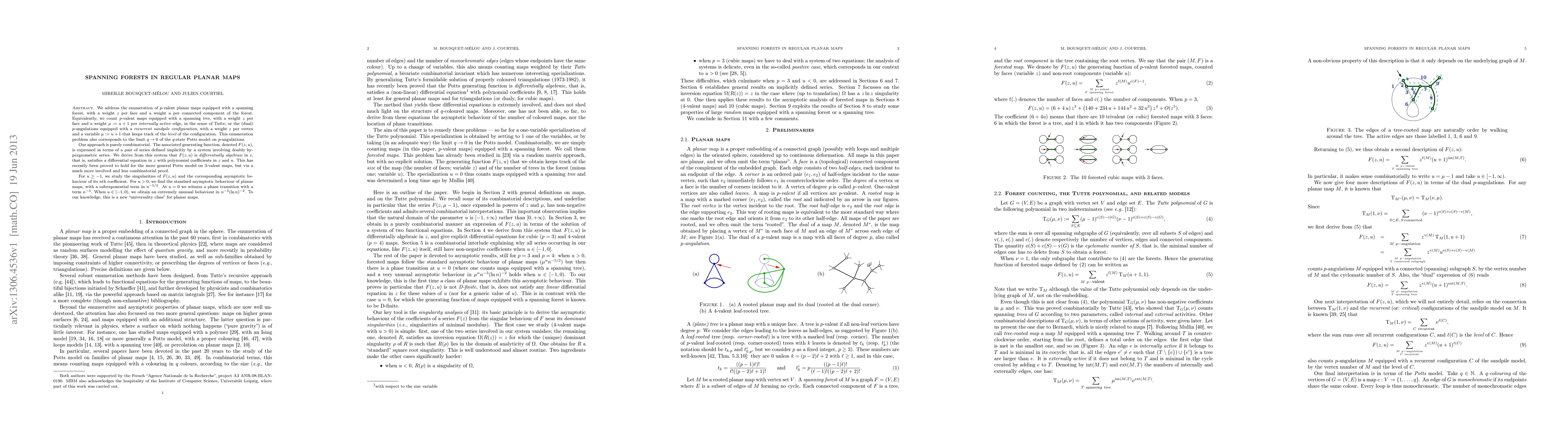 We address the enumeration of p-valent planar maps equipped with a spanning forest, with a weight z per face and a weight u per connected component of the forest. Equivalently, we count p-valent maps equipped with a spanning tree, with a weight z per face and a weight \mu:=u+1 per internally active edge, in the sense of Tutte; or the (dual) p-angulations equipped with a recurrent sandpile configuration, with a weight z per vertex and a variable \mu:=u+1 that keeps track of the level of the configuration. This enumeration problem also corresponds to the limit q -> 0 of the q-state Potts model on p-angulations. Our approach is purely combinatorial. The associated generating function, denoted F(z,u), is expressed in terms of a pair of series defined implicitly by a system involving doubly hypergeometric series. We derive from this system that F(z,u) is differentially algebraic in z, that is, satisfies a differential equation in z with polynomial coefficients in z and u. This has recently been proved to hold for the more general Potts model on 3-valent maps, but via a much more involved and less combinatorial proof. For u >= -1, we study the singularities of F(z,u) and the corresponding asymptotic behaviour of its n-th coefficient. For u>0, we find the standard asymptotic behaviour of planar maps, with a subexponential term in n^{-5/2}. At u=0 we witness a phase transition with a term n^{-3}. When u\in[-1,0), we obtain an extremely unusual behaviour in n^{-3}(\ln n)^{-2}. To our knowledge, this is a new "universality class" for planar maps.