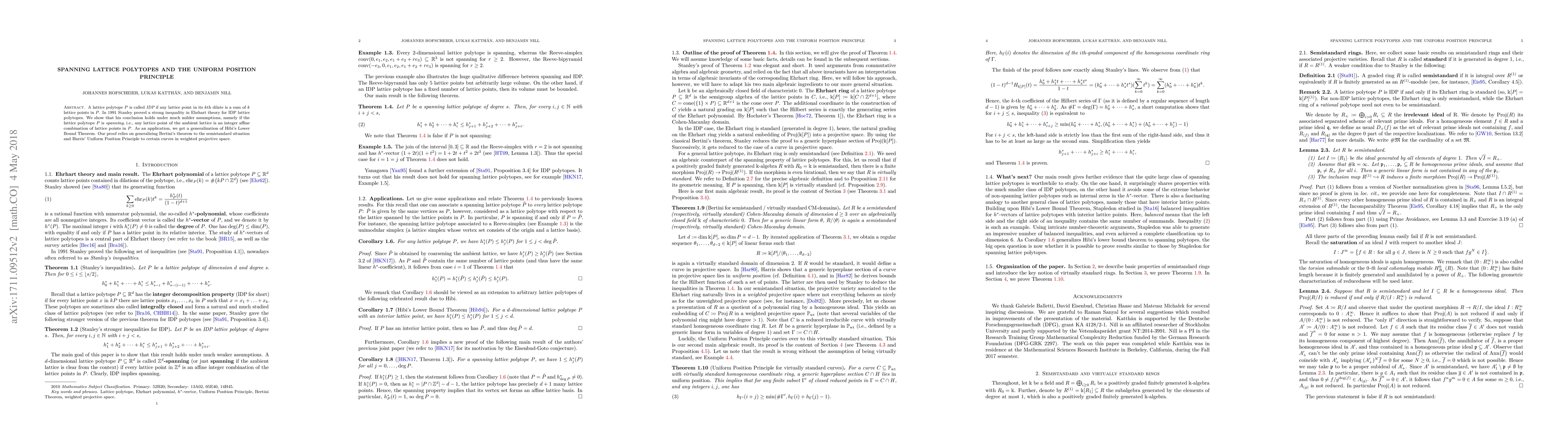 A lattice polytope $P$ is called IDP if any lattice point in its $k$th dilate is a sum of $k$ lattice points in $P$. In 1991 Stanley proved a strong inequality in Ehrhart theory for IDP lattice polytopes. We show that his conclusion holds under much milder assumptions, namely if the lattice polytope $P$ is spanning, i.e., any lattice point of the ambient lattice is an integer affine combination of lattice points in $P$. As an application, we get a generalization of Hibi's Lower Bound Theorem. Our proof relies on generalizing Bertini's theorem to the semistandard situation and Harris' Uniform Position Principle to certain curves in weighted projective space.