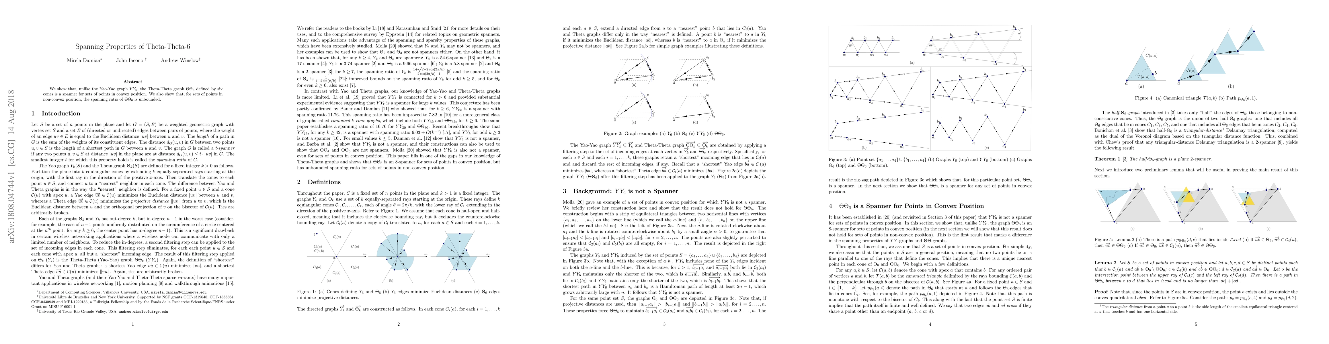 We show that, unlike the Yao-Yao graph $YY_6$, the Theta-Theta graph $\Theta\Theta_6$ defined by six cones is a spanner for sets of points in convex position. We also show that, for sets of points in non-convex position, the spanning ratio of $\Theta\Theta_6$ is unbounded.