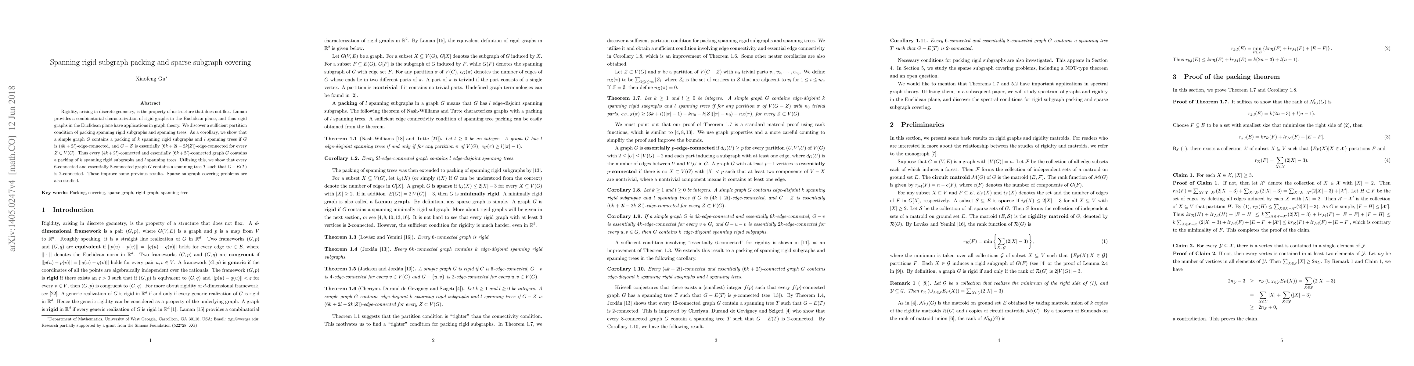 Rigidity, arising in discrete geometry, is the property of a structure that does not flex. Laman provides a combinatorial characterization of rigid graphs in the Euclidean plane, and thus rigid graphs in the Euclidean plane have applications in graph theory. We discover a sufficient partition condition of packing spanning rigid subgraphs and spanning trees. As a corollary, we show that a simple graph $G$ contains a packing of $k$ spanning rigid subgraphs and $l$ spanning trees if $G$ is $(4k+2l)$-edge-connected, and $G-Z$ is essentially $(6k+2l - 2k|Z|)$-edge-connected for every $Z\subset V(G)$. Thus every $(4k+2l)$-connected and essentially $(6k+2l)$-connected graph $G$ contains a packing of $k$ spanning rigid subgraphs and $l$ spanning trees. Utilizing this, we show that every $6$-connected and essentially $8$-connected graph $G$ contains a spanning tree $T$ such that $G-E(T)$ is $2$-connected. These improve some previous results. Sparse subgraph covering problems are also studied.