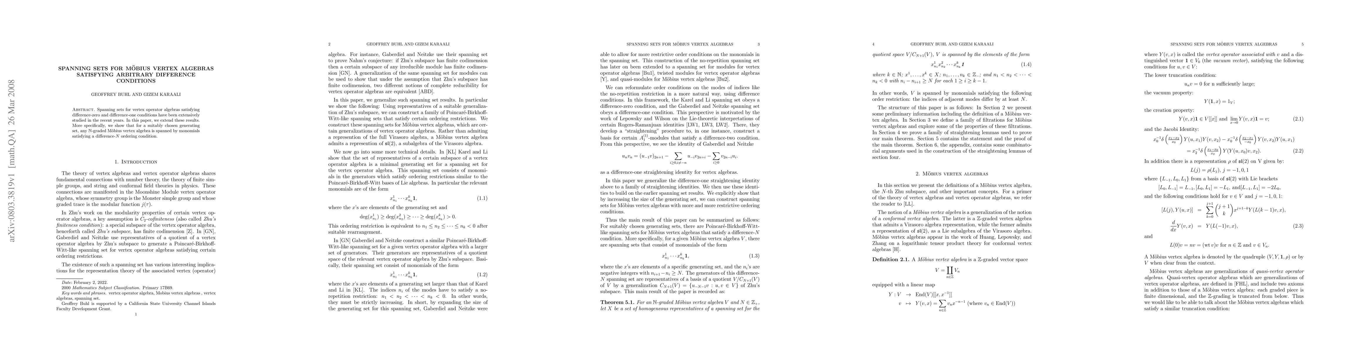 Summary: This paper extends existing research on spanning sets for vertex operator algebras, demonstrating that N-graded Moebius vertex algebras can be spanned by monomials that satisfy a difference-N ordering condition, given a suitable generating set.