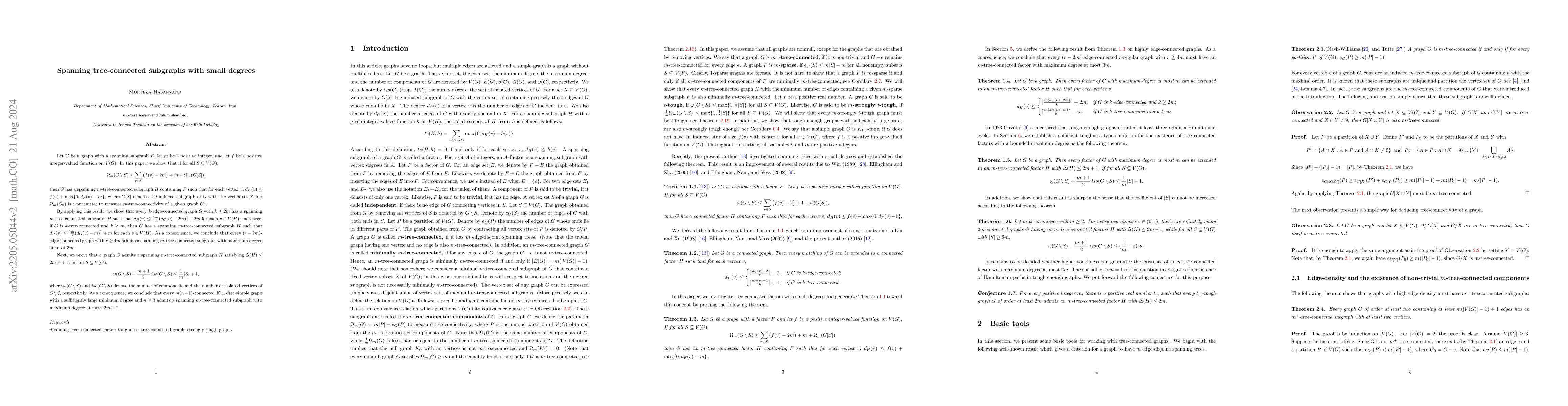 The paper proves that certain graphs have spanning tree-connected subgraphs with small degrees, improving upon a long-standing conjecture.
