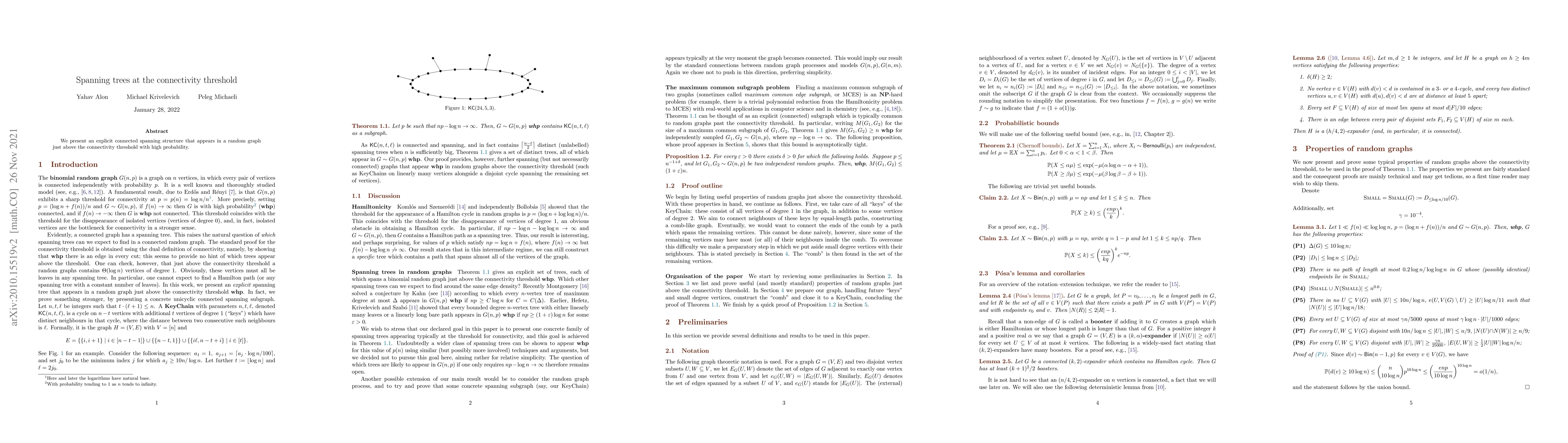 Summary: This paper identifies an explicit connected spanning structure in random graphs that emerges just above the connectivity threshold, occurring with high probability. The findings provide insight into the transition from disconnected to connected networks.