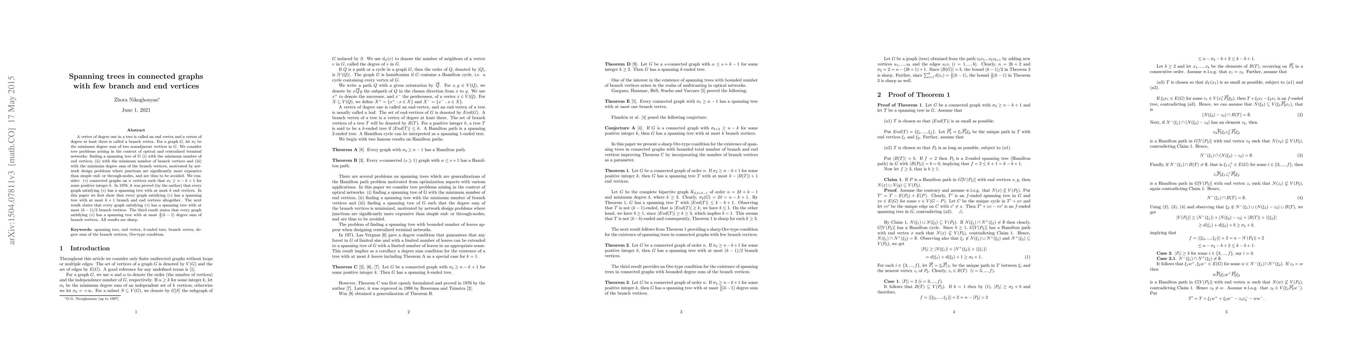 A vertex of degree one in a tree is called an end vertex and a vertex of degree at least three is called a branch vertex. For a graph $G$, let $\sigma_2$ be the minimum degree sum of two nonadjacent vertices in $G$. We consider tree problems arising in the context of optical and centralized terminal networks: finding a spanning tree of G (i) with the minimum number of end vertices, (ii) with the minimum number of branch vertices and (iii) with the minimum degree sum of the branch vertices, motivated by network design problems where junctions are significantly more expensive than simple end- or through-nodes, and are thus to be avoided. We consider: $(\ast)$ connected graphs on $n$ vertices such that $\sigma_2\ge n-k+1$ for some positive integer $k$. In 1976, it was proved (by the author) that every graph satisfying $(\ast)$ has a spanning tree with at most $k$ end vertices. In this paper we first show that every graph satisfying $(\ast)$ has a spanning tree with at most $k+1$ branch and end vertices altogether. The next result states that every graph satisfying $(\ast)$ has a spanning tree with at most $(k-1)/2$ branch vertices. The third result states that every graph satisfying $(\ast)$ has a spanning tree with at most $\frac{3}{2}(k-1)$ degree sum of branch vertices. All results are sharp.