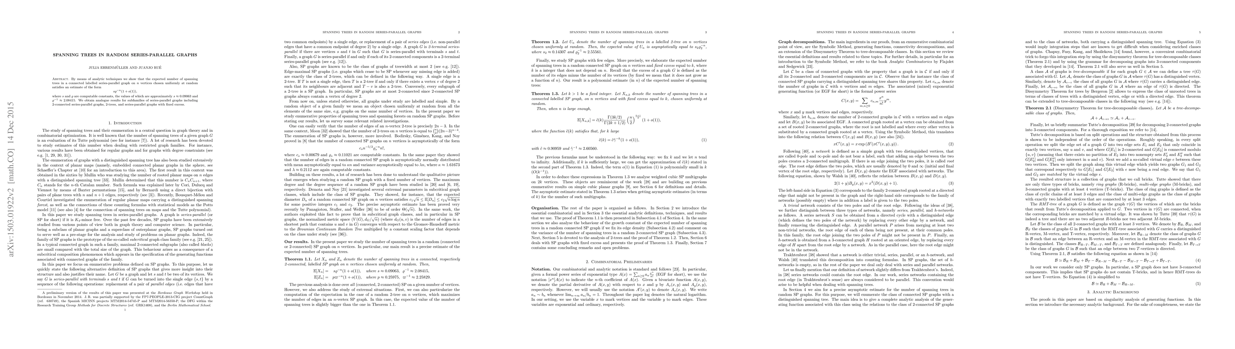 The paper introduces detailed analytic techniques for estimating the number of spanning trees in random series-parallel graphs and extends these to related graph classes, providing explicit formulas for constants and singular expansions.