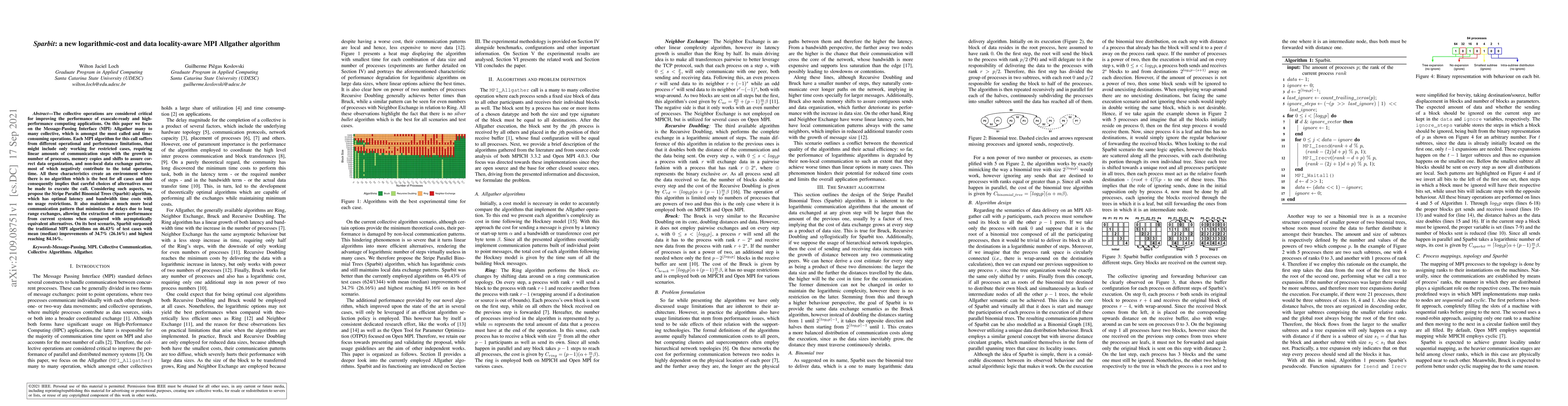 Researchers propose a new MPI Allgather algorithm called Sparbit that offers optimal latency and bandwidth efficiency with no usage restrictions, leading to improved performance in high-performance computing applications.
