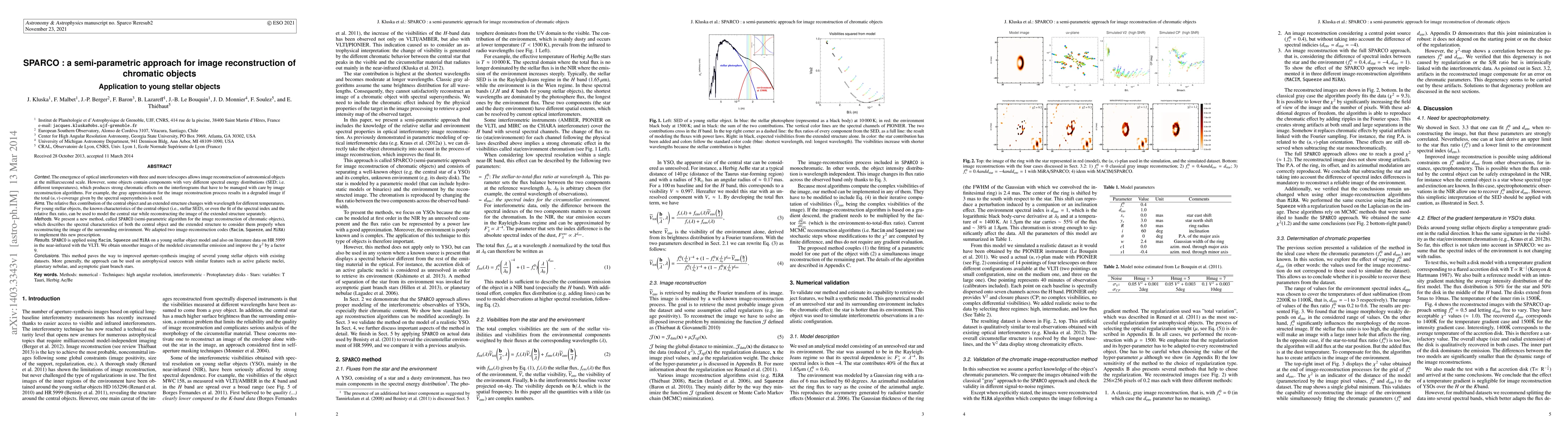 The emergence of optical interferometers with three and more telescopes allows image reconstruction of astronomical objects at the milliarcsecond scale. However, some objects contain components with very different spectral energy distributions (SED; i.e. different temperatures), which produces strong chromatic effects on the interferograms that have to be managed with care by image reconstruction algorithms. For example, the gray approximation for the image reconstruction process results in a degraded image if the total (u, v)-coverage given by the spectral supersynthesis is used. The relative flux contribution of the central object and an extended structure changes with wavelength for different temperatures. For young stellar objects, the known characteristics of the central object (i.e., stellar SED), or even the fit of the spectral index and the relative flux ratio, can be used to model the central star while reconstructing the image of the extended structure separately. Methods. We present a new method, called SPARCO (semi-parametric algorithm for the image reconstruction of chromatic objects), which describes the spectral characteristics of both the central object and the extended structure to consider them properly when reconstructing the image of the surrounding environment. We adapted two image-reconstruction codes (Macim, Squeeze, and MiRA) to implement this new prescription. SPARCO is applied using Macim, Squeeze and MiRA on a young stellar object model and also on literature data on HR5999 in the near-infrared with the VLTI. This method paves the way to improved aperture-synthesis imaging of several young stellar objects with existing datasets. More generally, the approach can be used on astrophysical sources with similar features such as active galactic nuclei, planetary nebulae, and asymptotic giant branch stars.