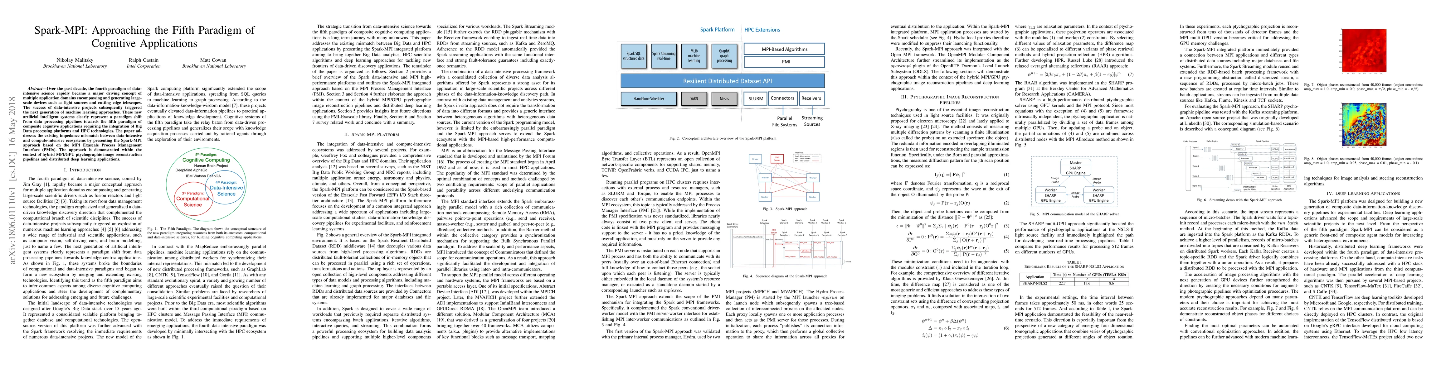 Over the past decade, the fourth paradigm of data-intensive science rapidly became a major driving concept of multiple application domains encompassing and generating large-scale devices such as light sources and cutting edge telescopes. The success of data-intensive projects subsequently triggered the next generation of machine learning approaches. These new artificial intelligent systems clearly represent a paradigm shift from data processing pipelines towards the fifth paradigm of composite cognitive applications requiring the integration of Big Data processing platforms and HPC technologies. The paper addresses the existing impedance mismatch between data-intensive and compute-intensive ecosystems by presenting the Spark-MPI approach based on the MPI Exascale Process Management Interface (PMIx). The approach is demonstrated within the context of hybrid MPI/GPU ptychographic image reconstruction pipelines and distributed deep learning applications.